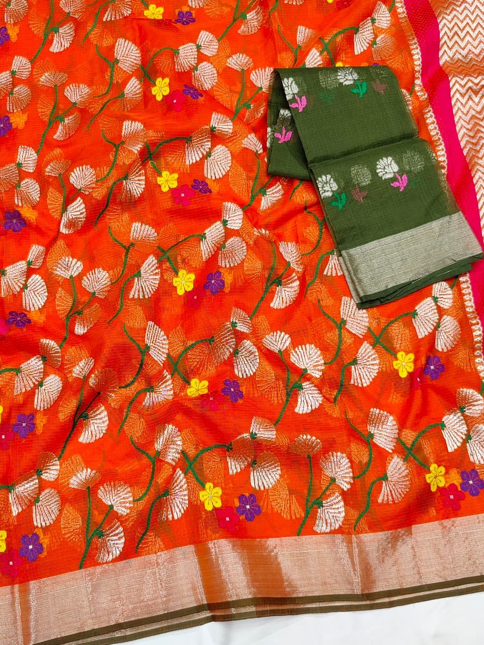 Special Note – This is a handloom saree and only one saree is available at a time and it will take 60-65 days to restock so please order fast.