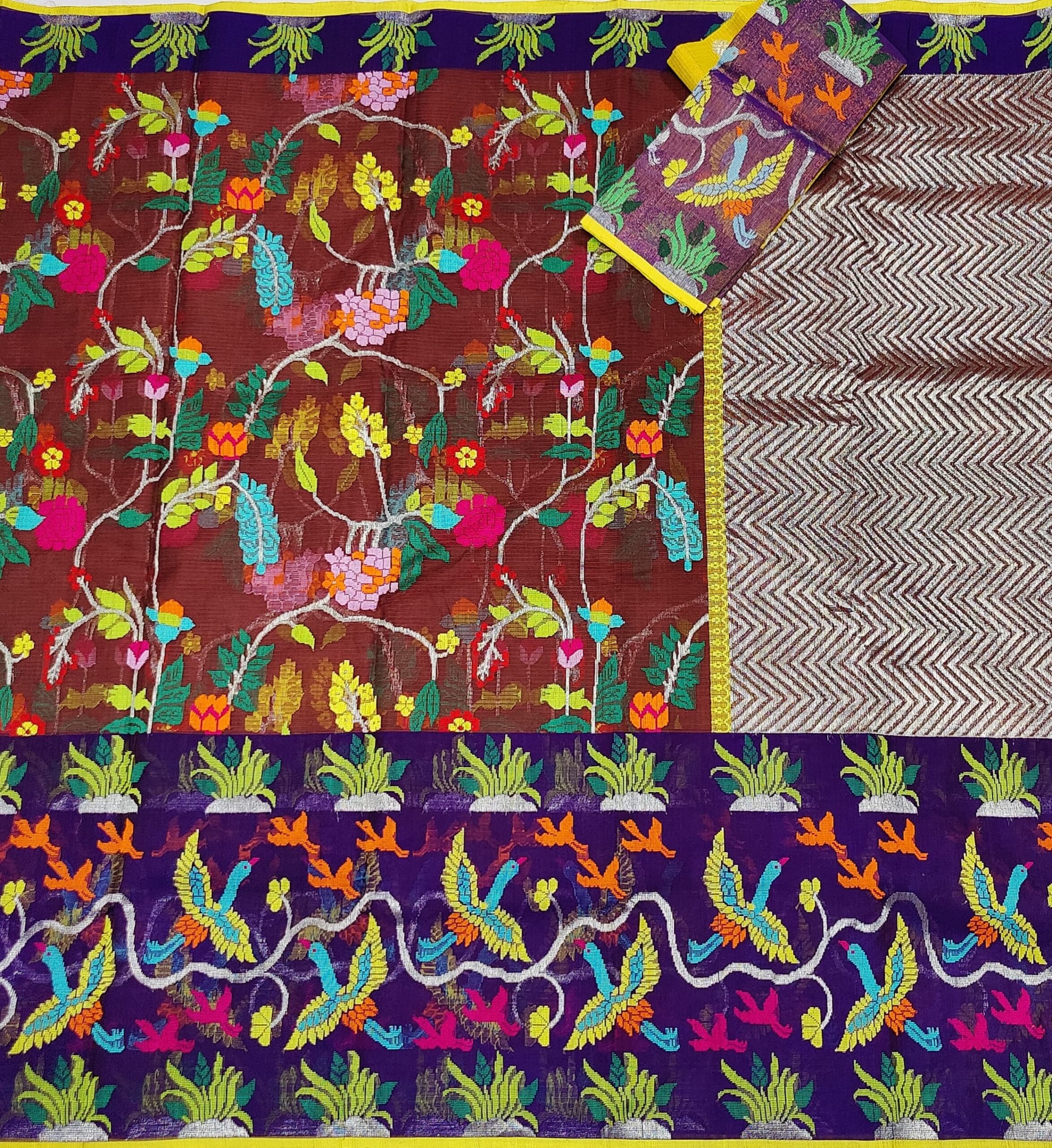 Special Note – This is a handloom saree and only one saree is available at a time and it will take 60-65 days to restock so please order fast.