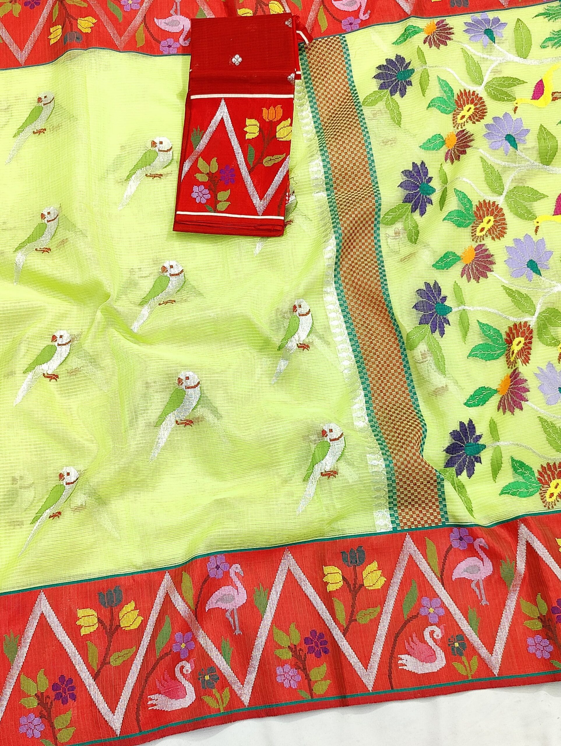 PURE BOTH SIDE BIG PAITHANI BORDER ZARIKOTA HANDLOOM SAREE S-129