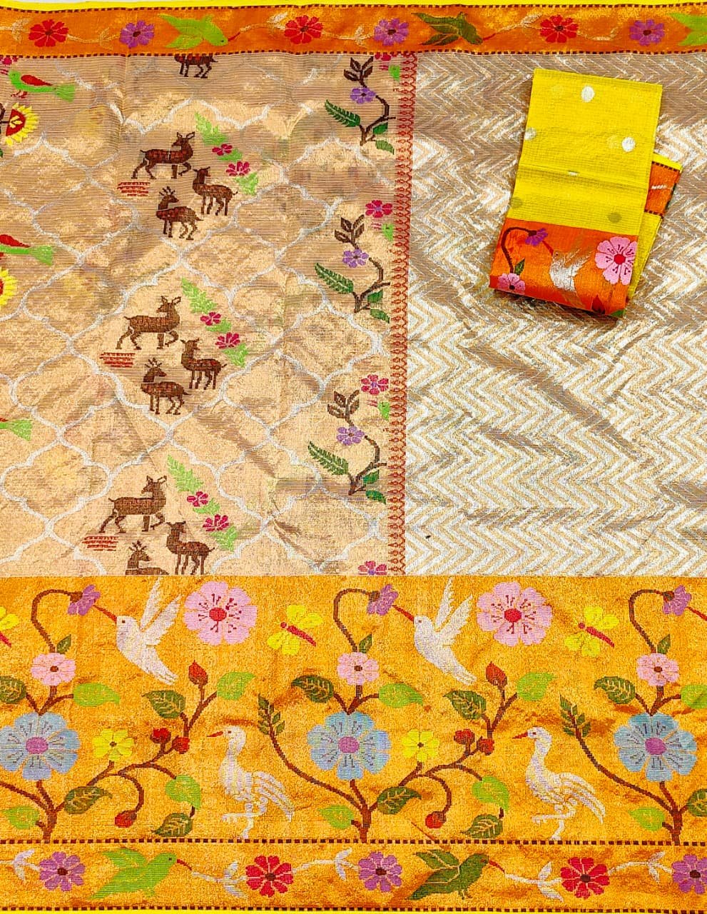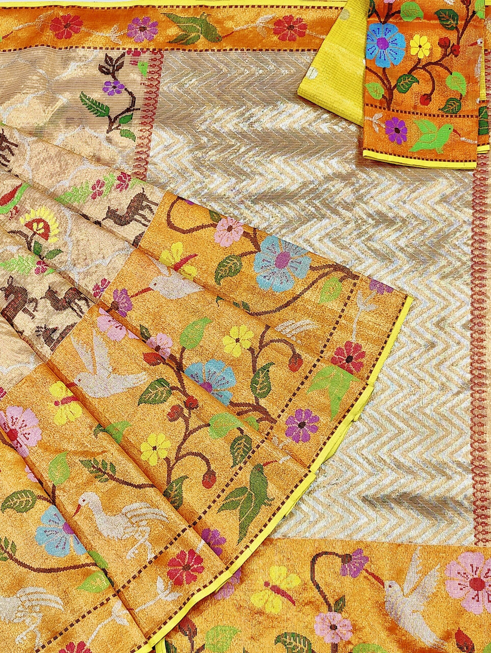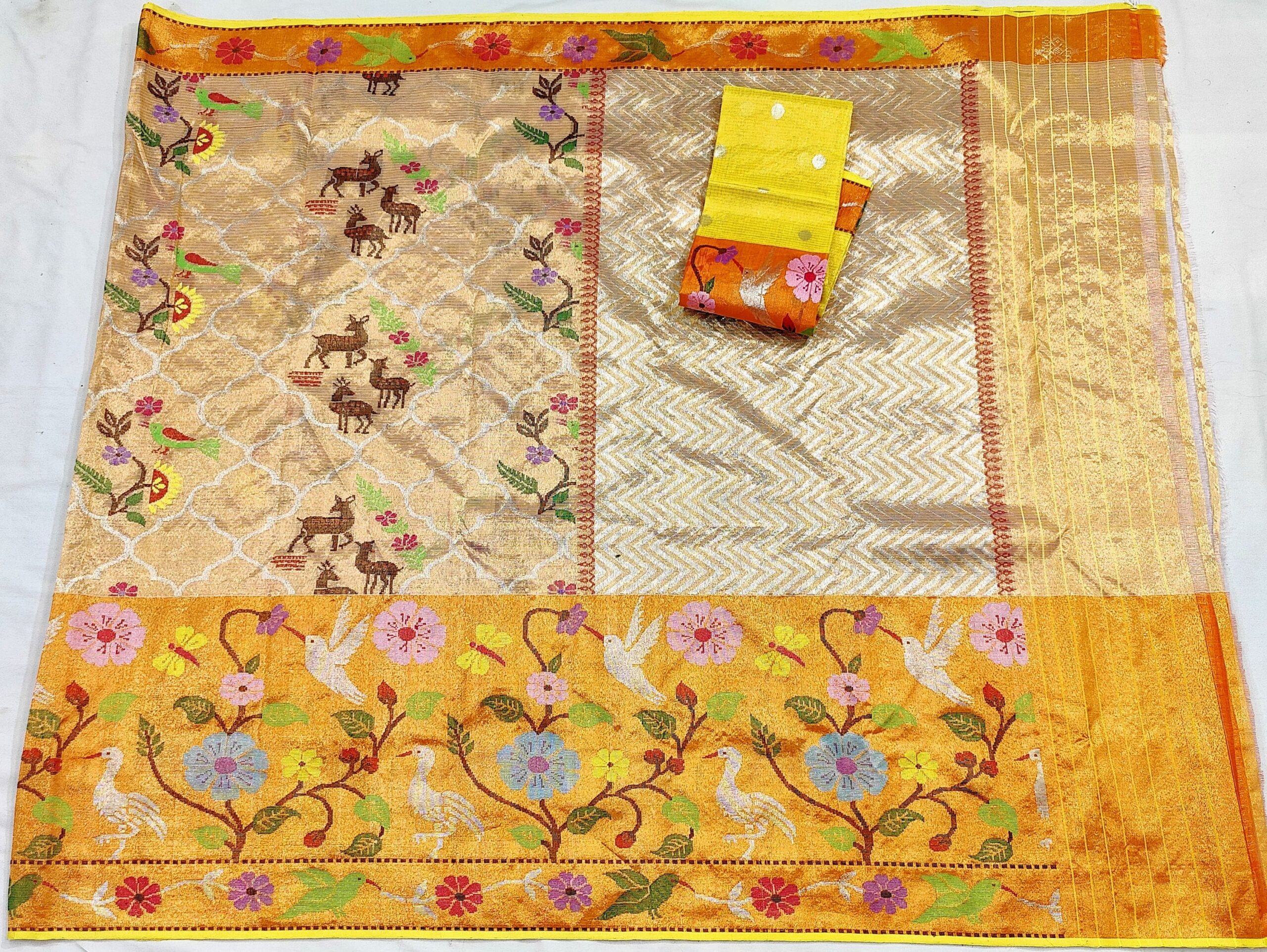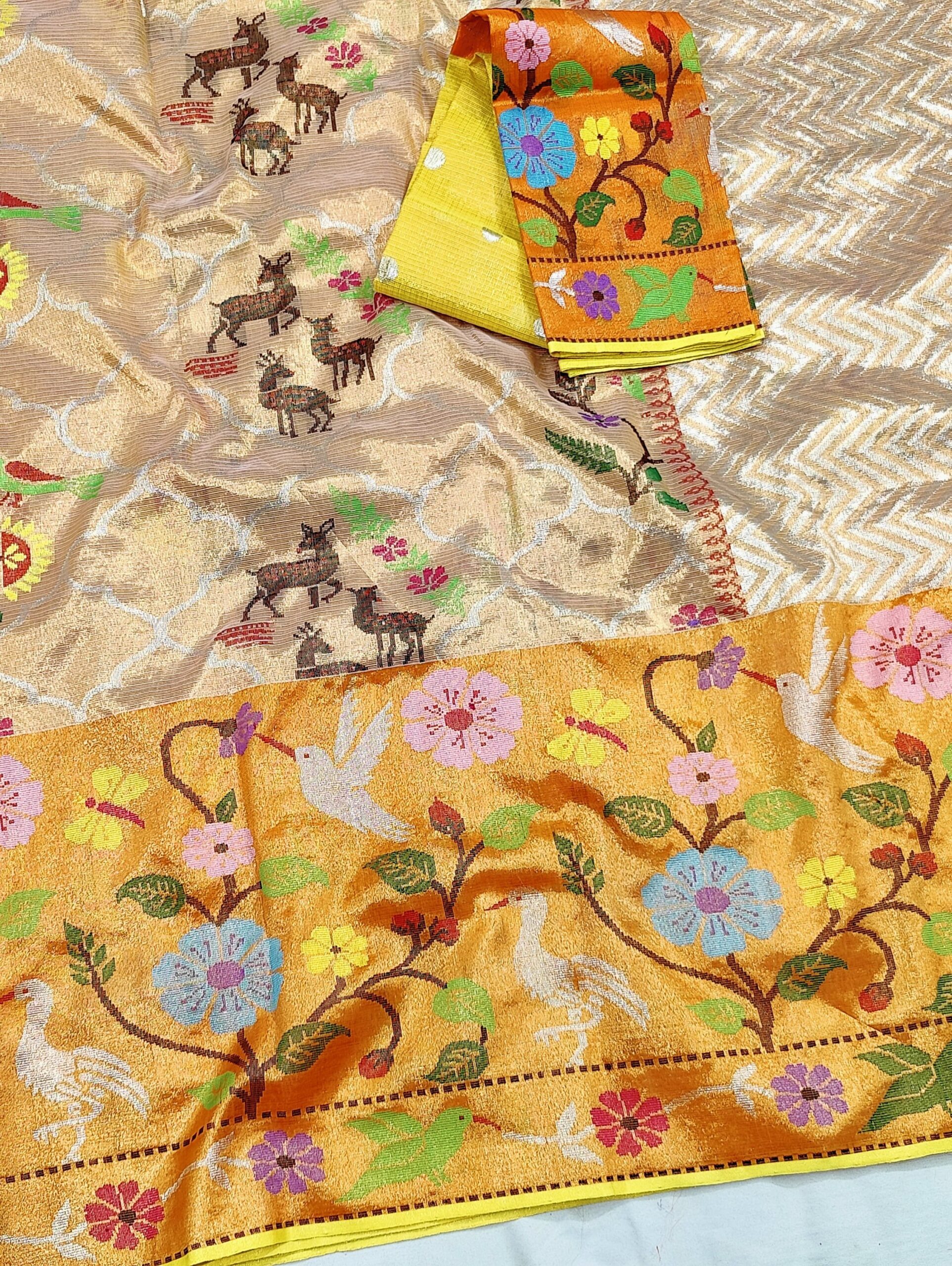 PURE GOLD DOUBLE BIG PAITHANI BORDER WITH TISSUE ALL OVER JAAL ZARIKOTA HANDLOOM SAREE_T-297