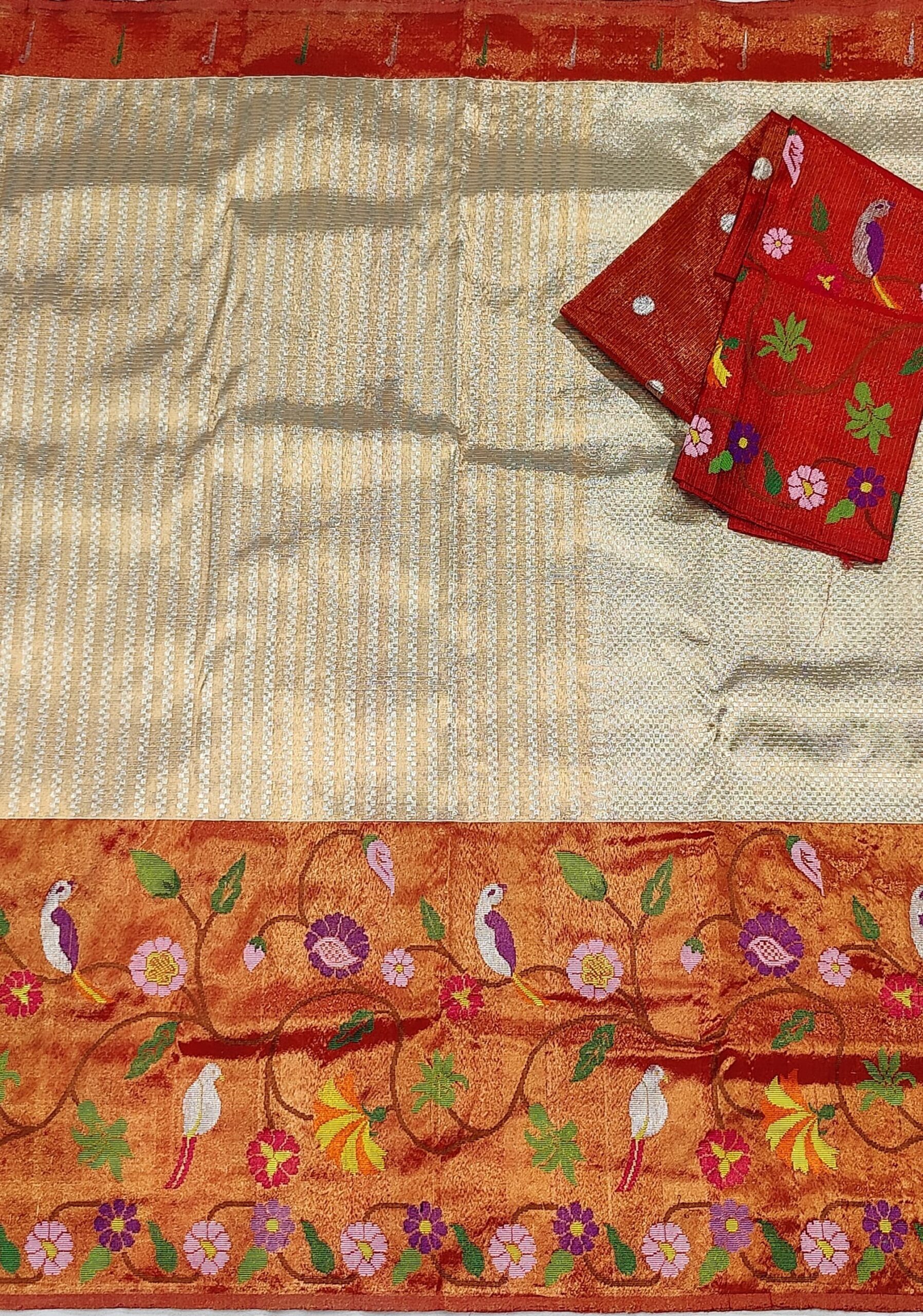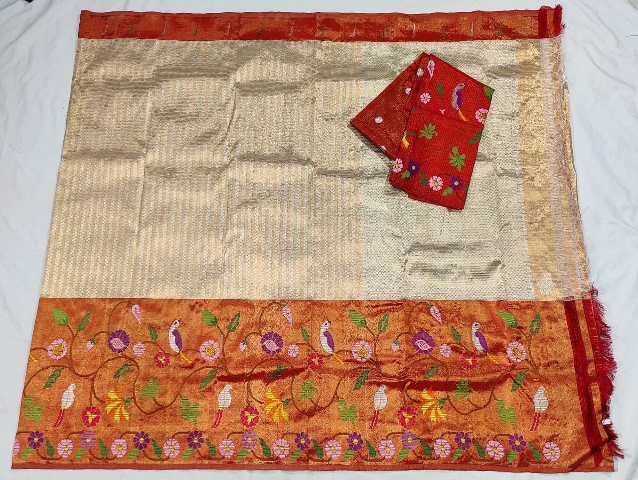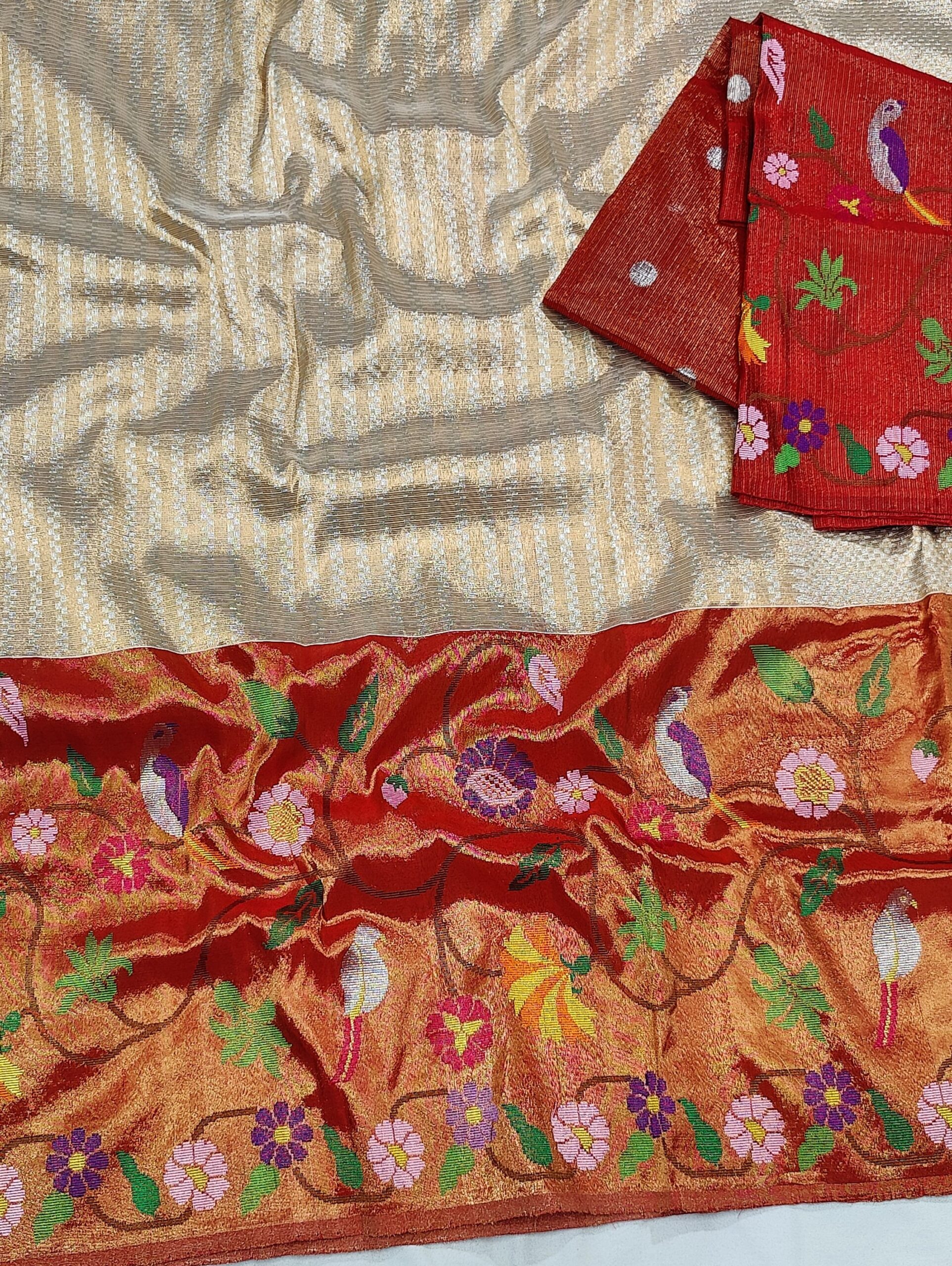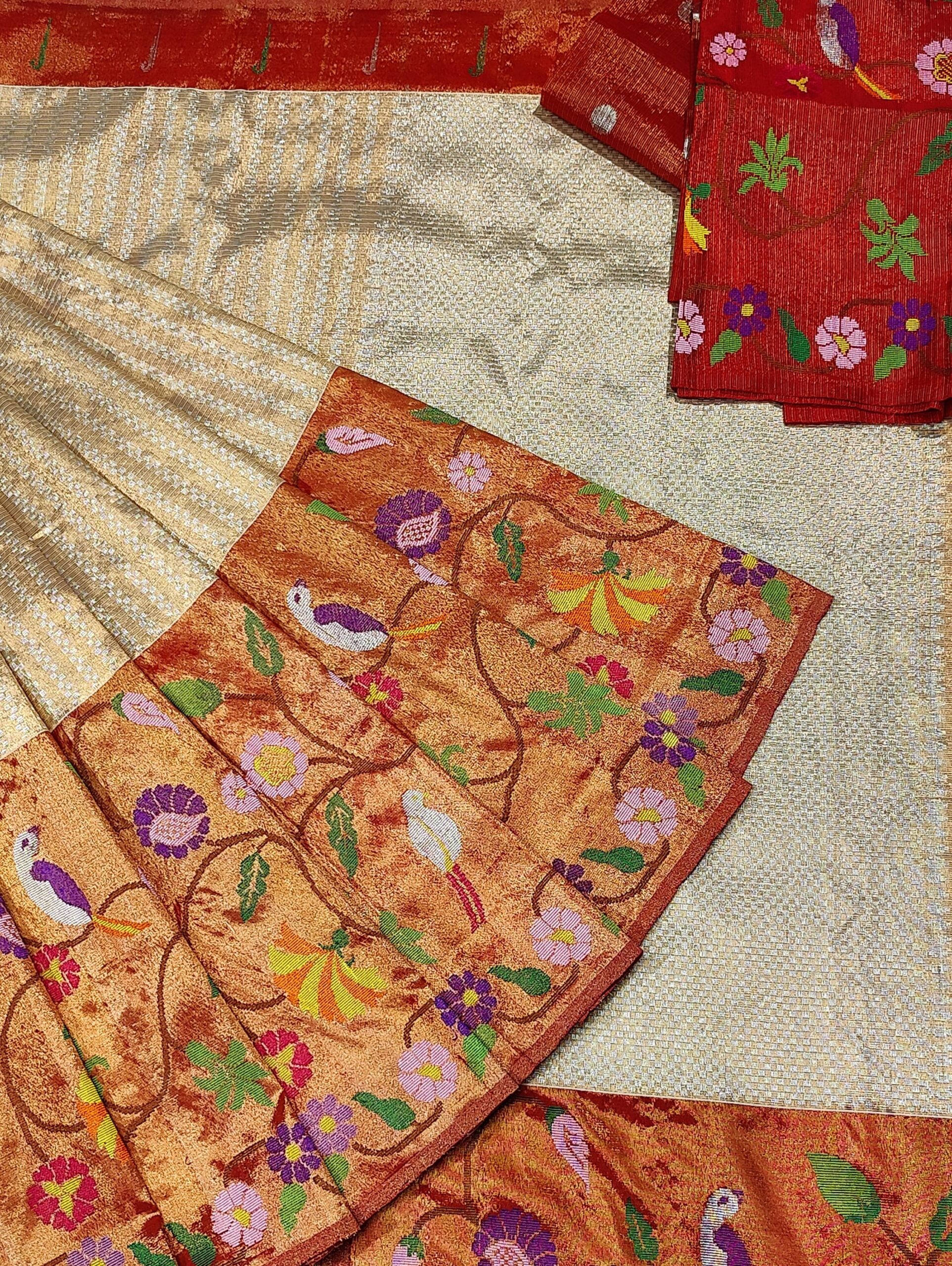 PURE GOLD DOUBLE BIG PAITHANI BORDER WITH TISSUE ALL OVER JAAL ZARIKOTA HANDLOOM SAREE_T-298
