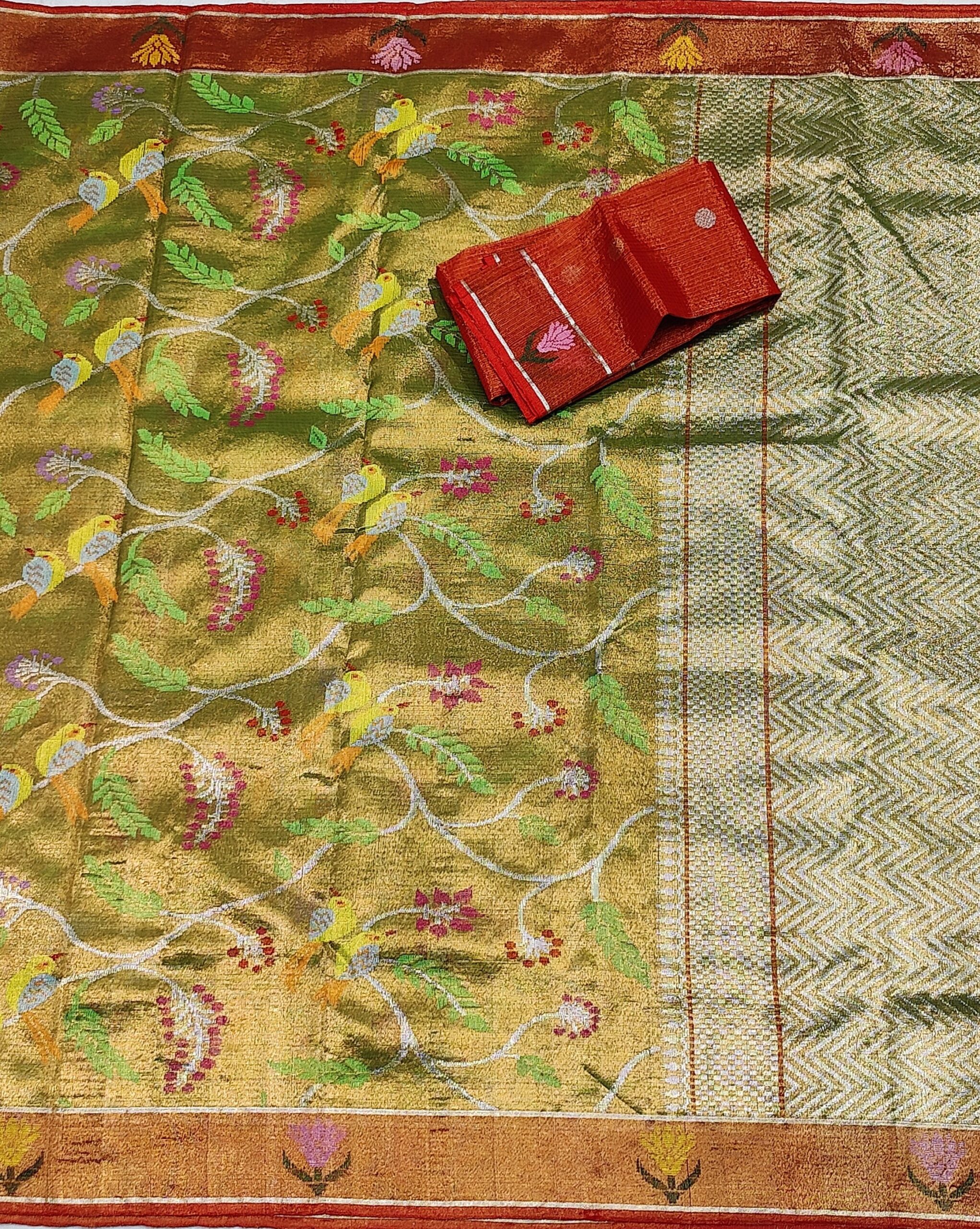 PURE GOLD DOUBLE TISSUE ALL OVER JAAL ZARIKOTA HANDLOOM SAREE_T-107