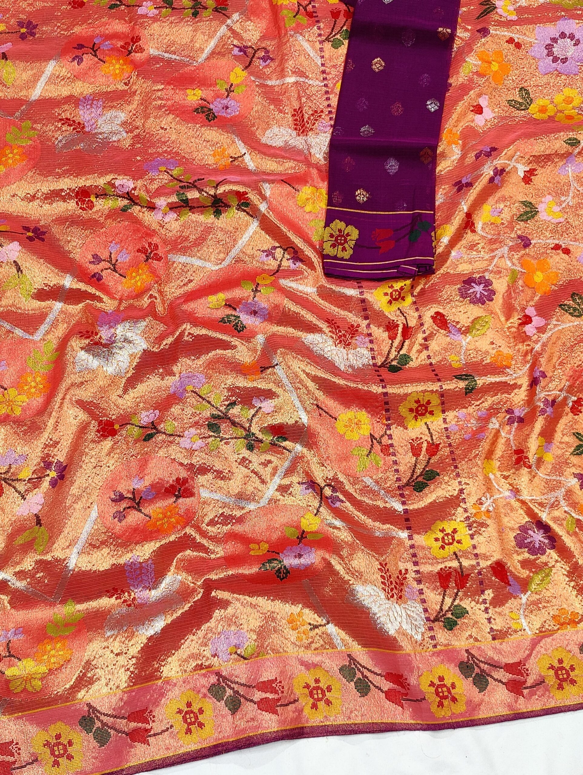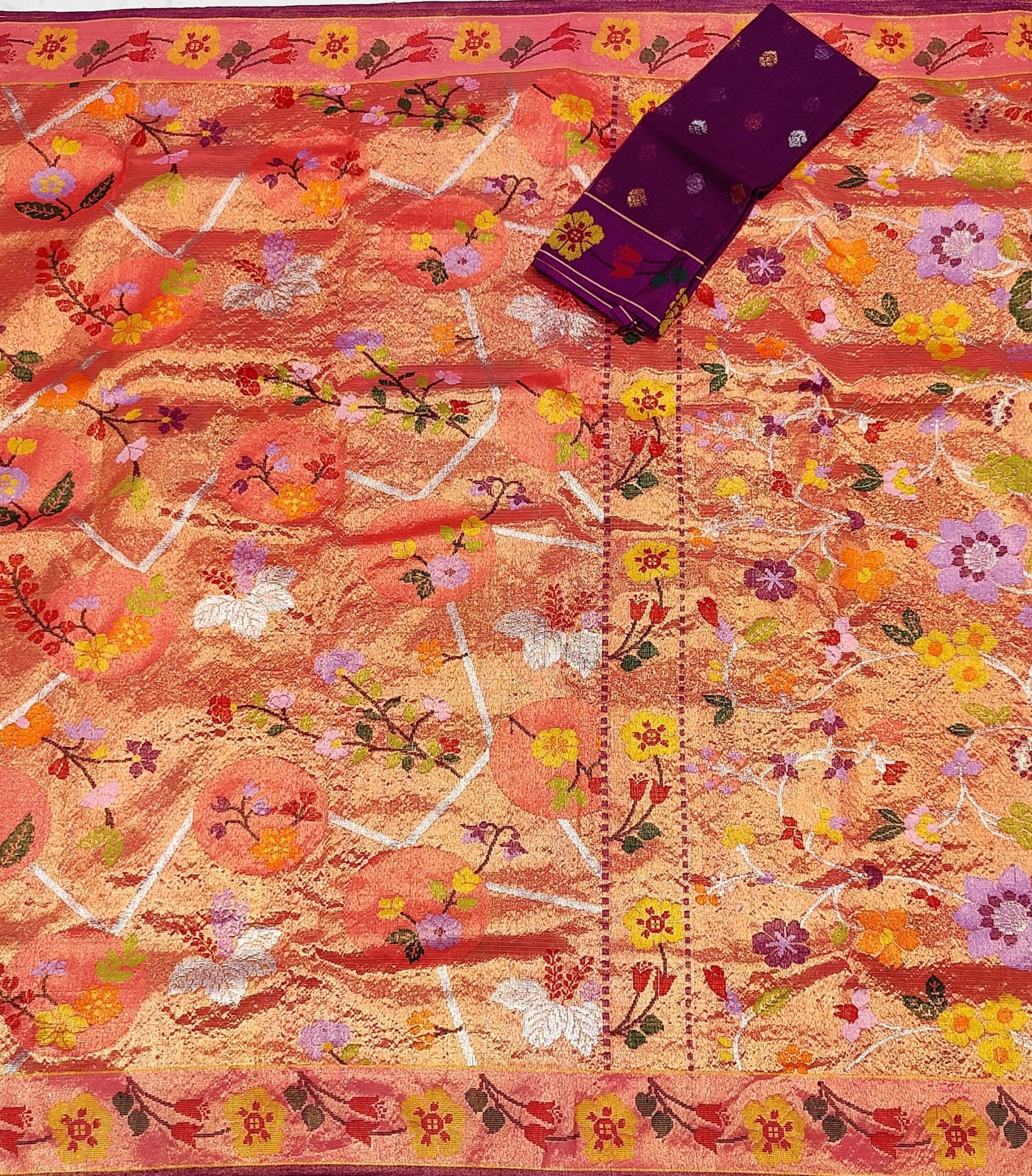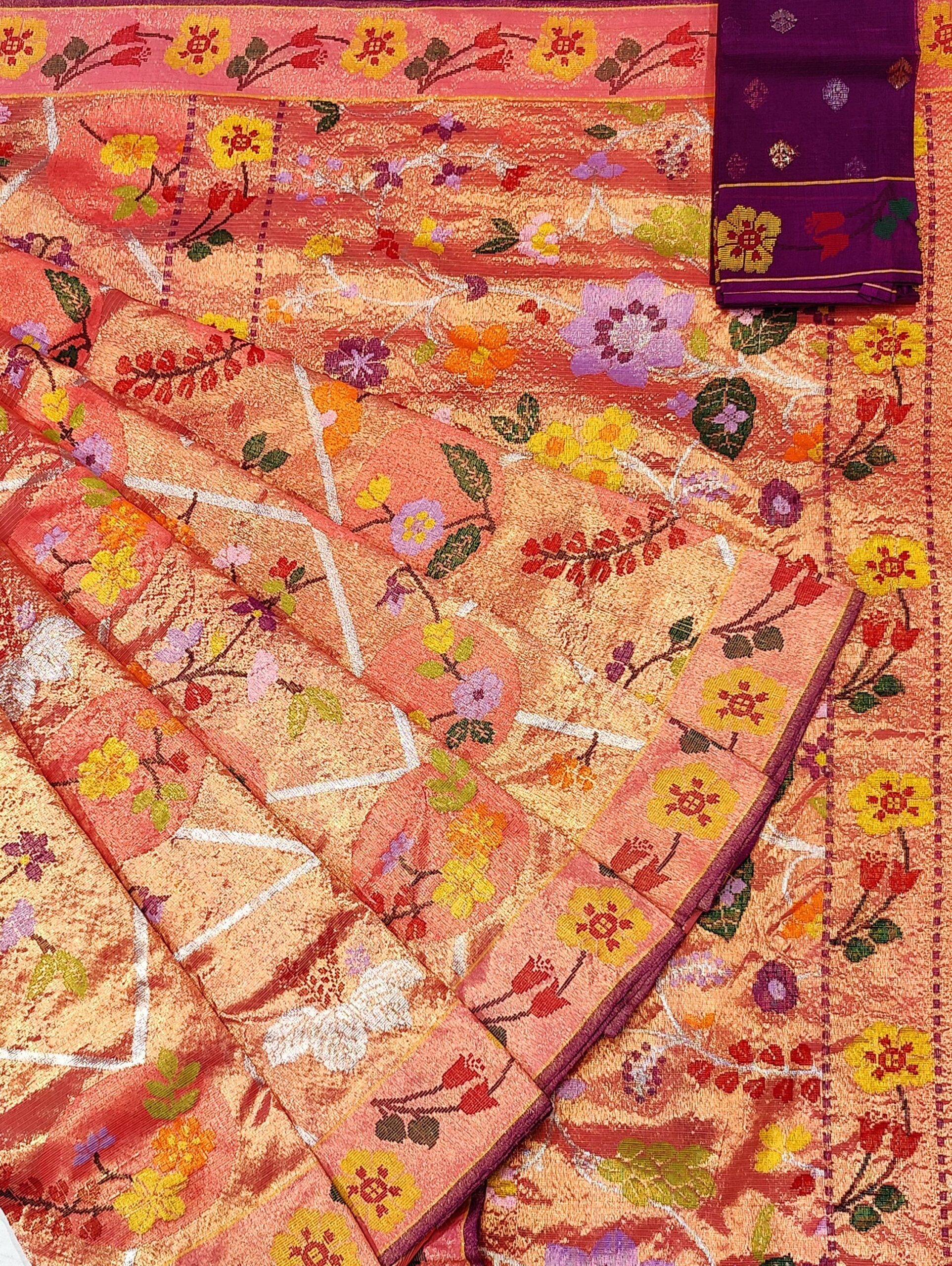 Special Note – This is a handloom saree and only one saree is available at a time and it will take 95-100 days to restock so please order fast.