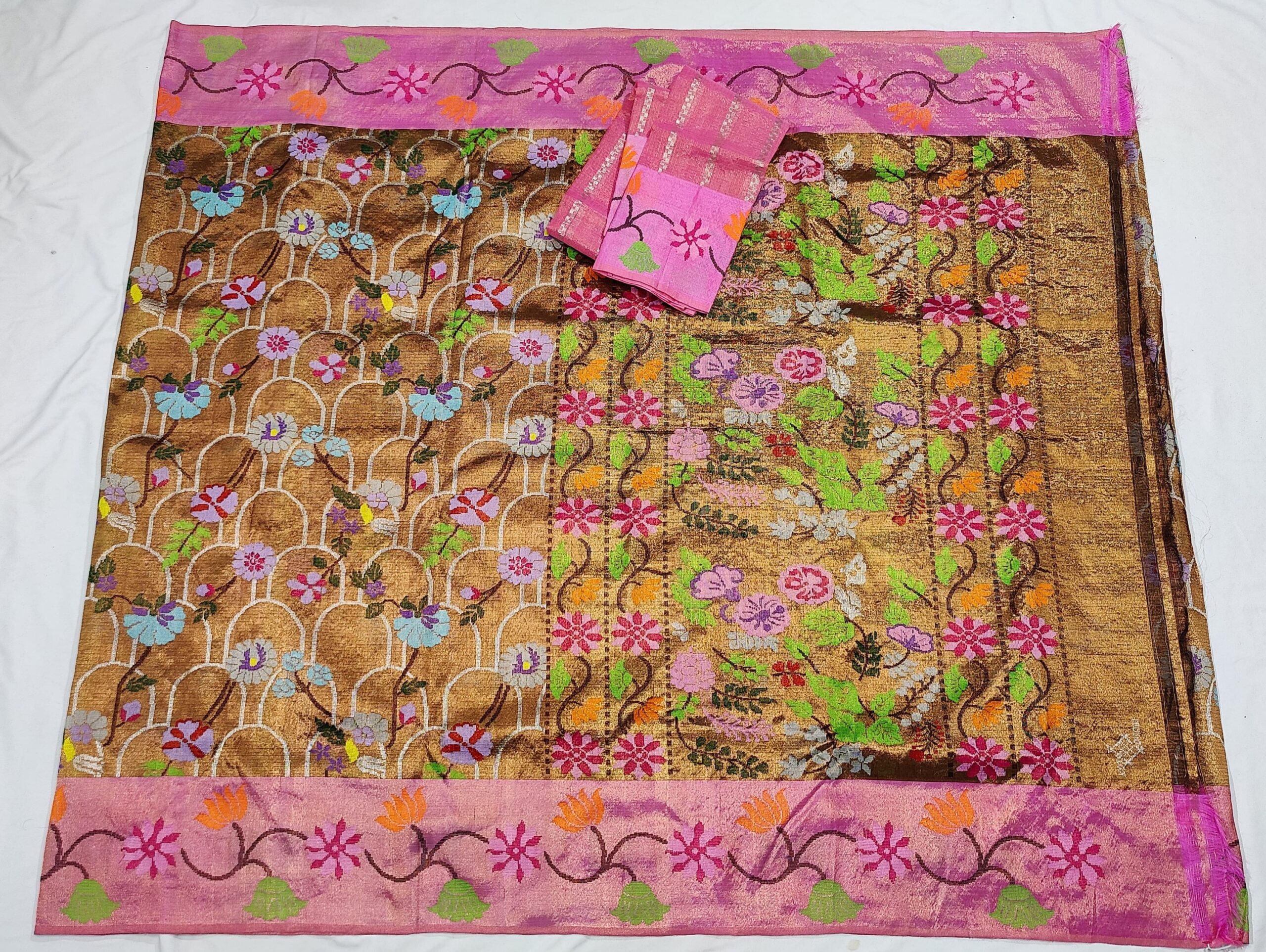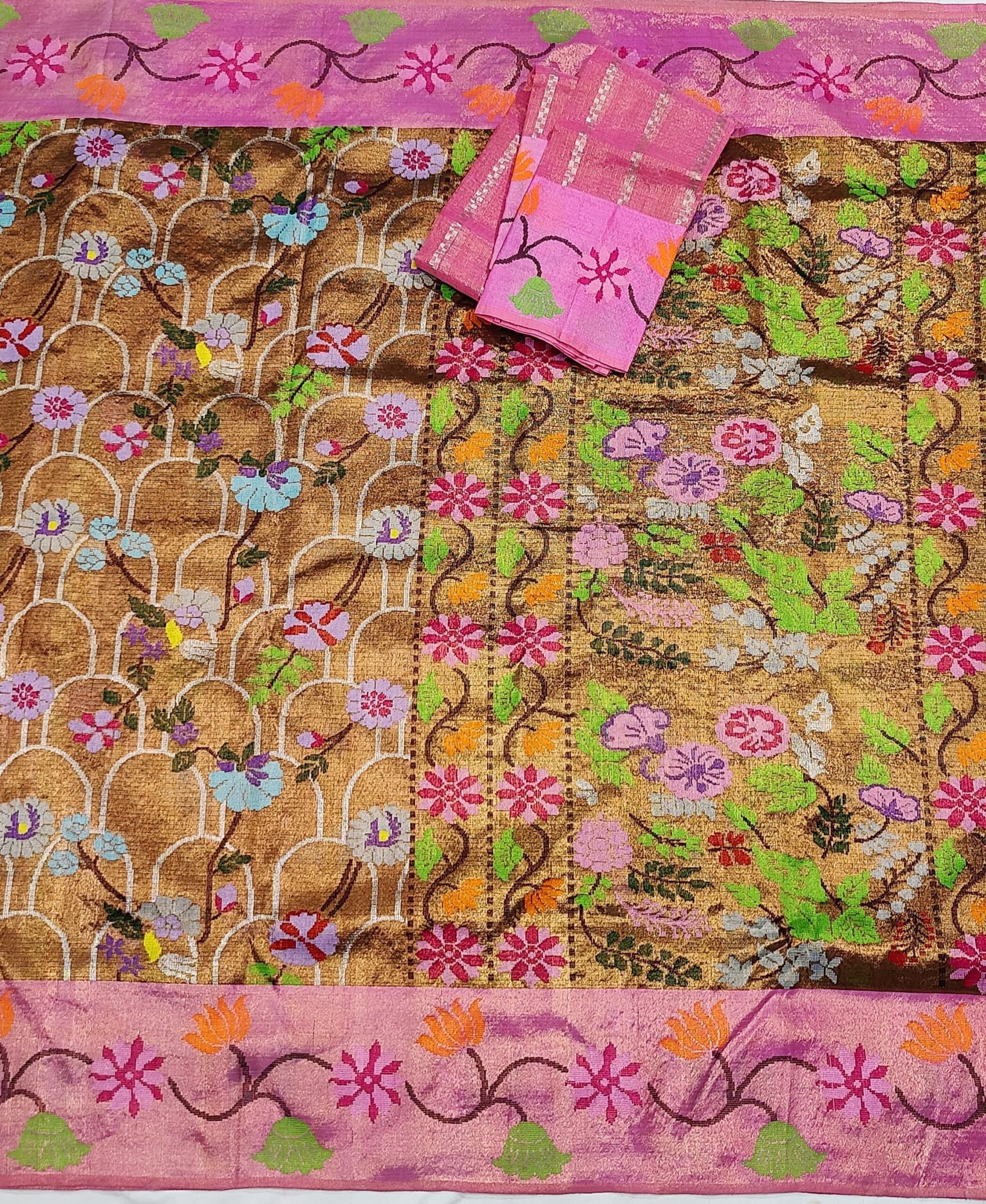 PURE GOLD DOUBLE TISSUE BIG PAITHANI BORDER WITH ALL OVER JAAL ZARIKOTA HANDLOOM SAREE_T-267
