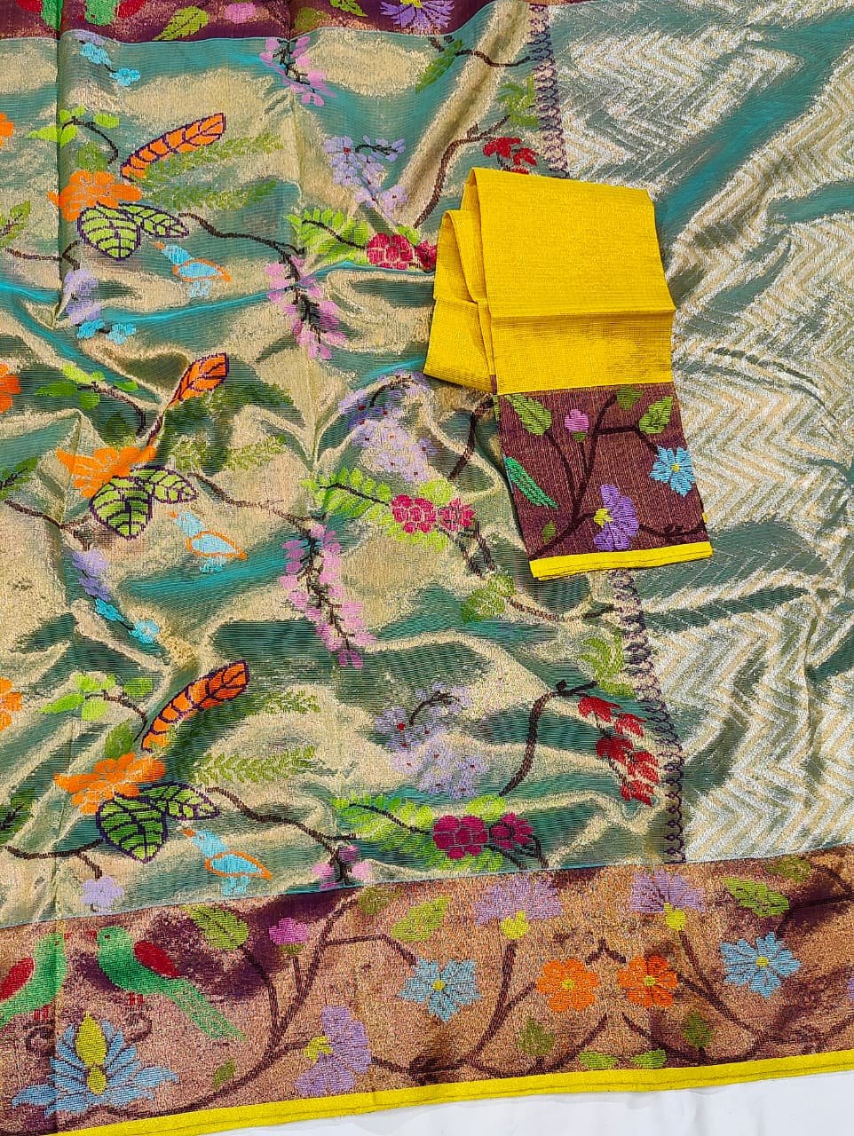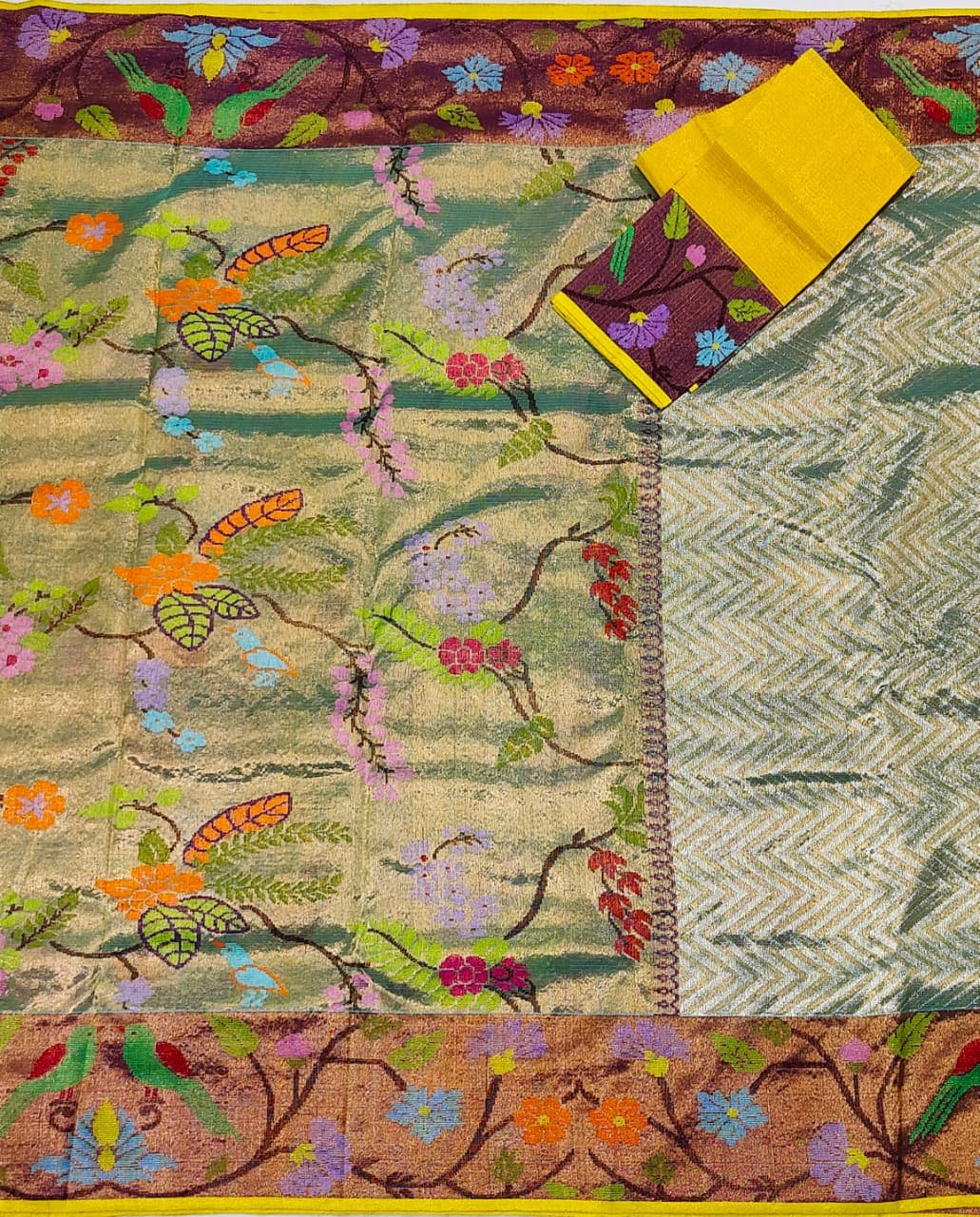 PURE GOLD DOUBLE TISSUE BITH SIDE PAITHANI BORDER WITH ALL OVER JAAL ZARIKOTA HANDLOOM SAREE_T-240