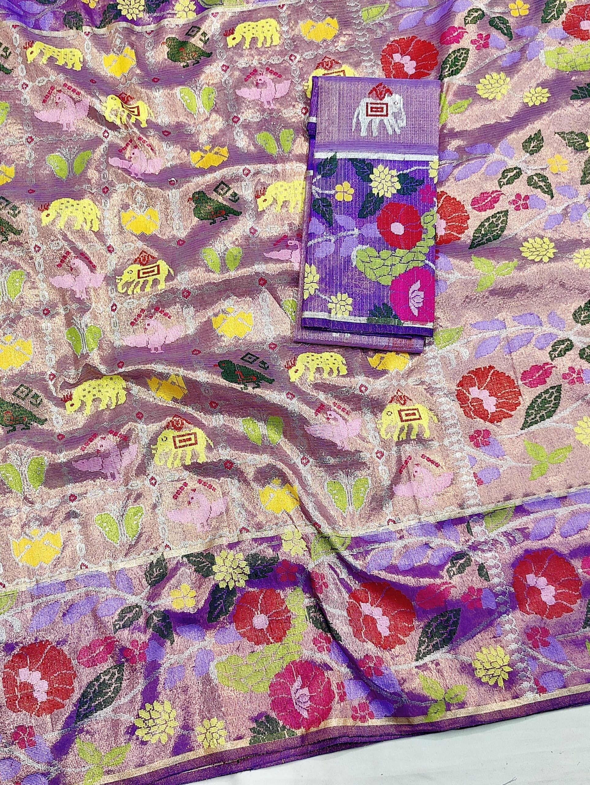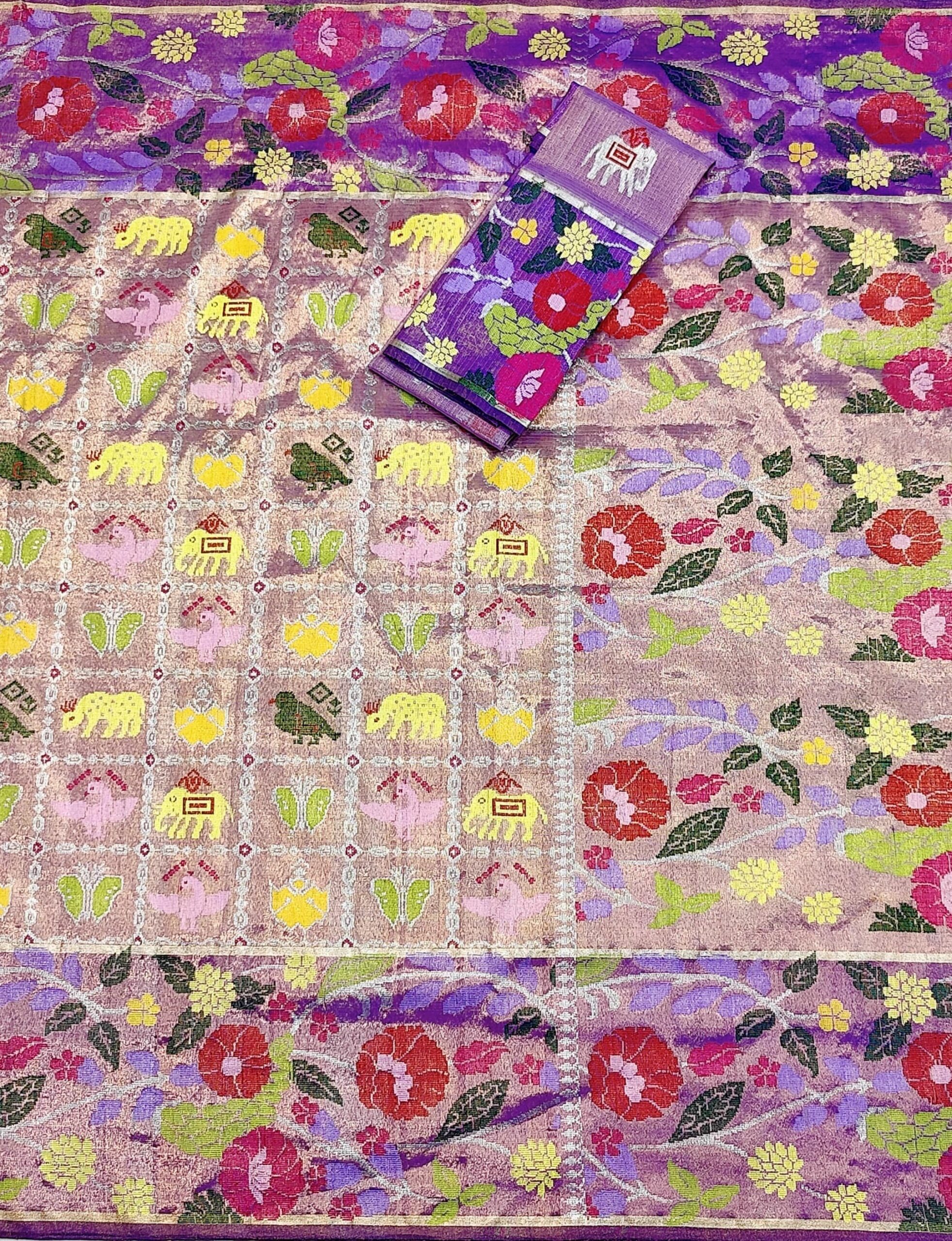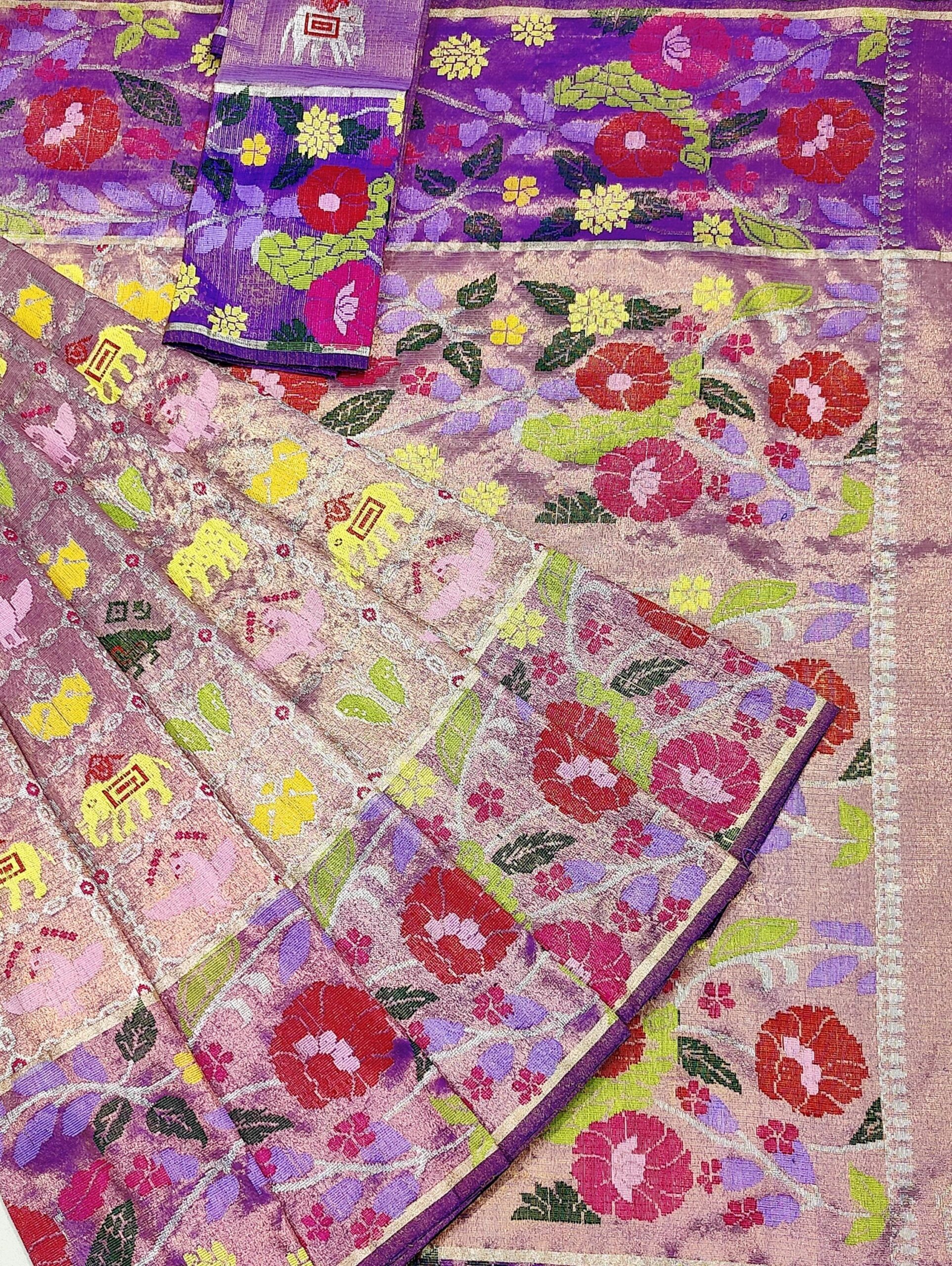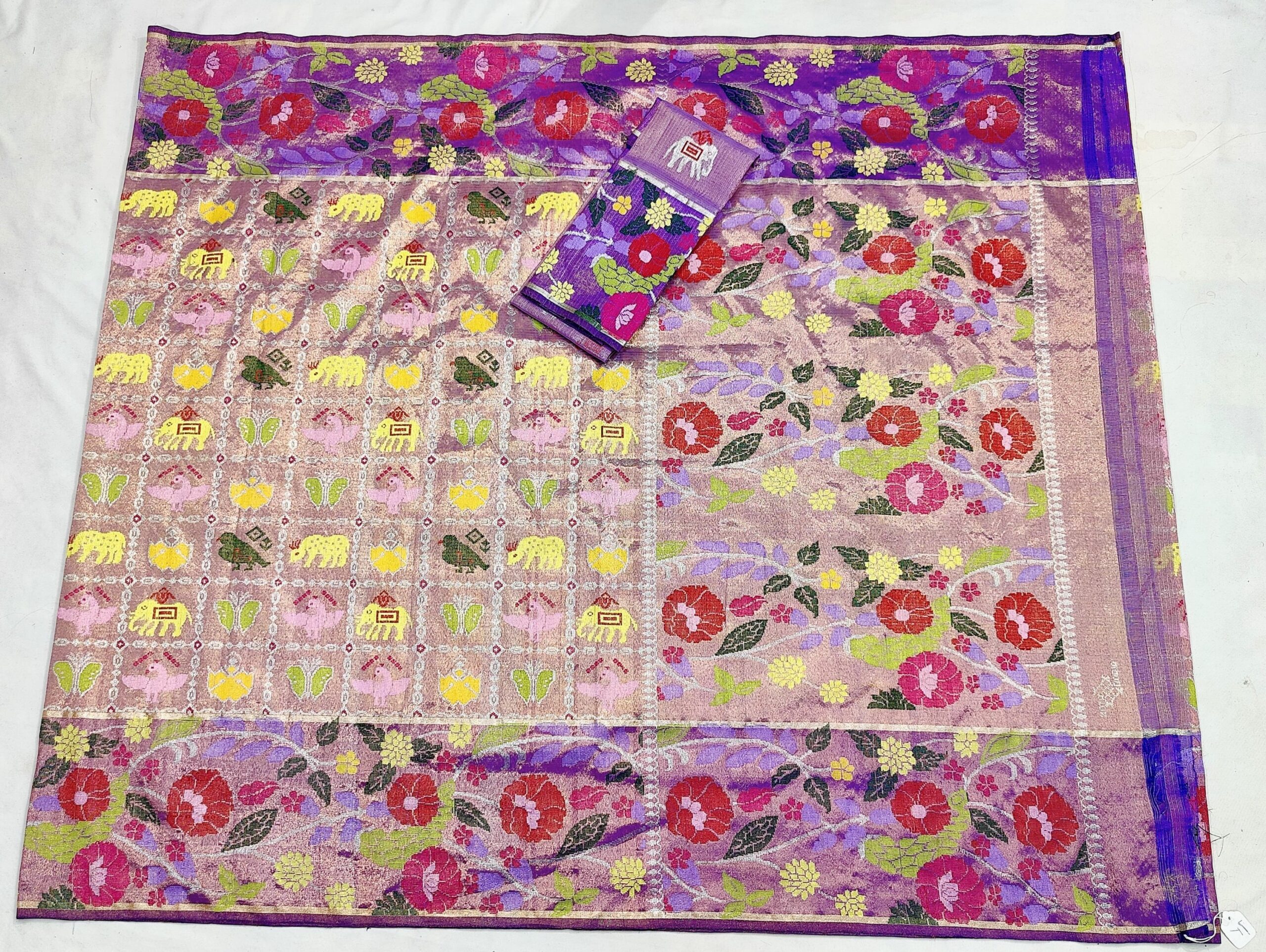 PURE GOLD DUBBLE TISSUE ALL OVER JAAL WITH BOTH SIDE BIG KANCHI BORDER ZARIKOTA HANDLOOM SAREE_T-342