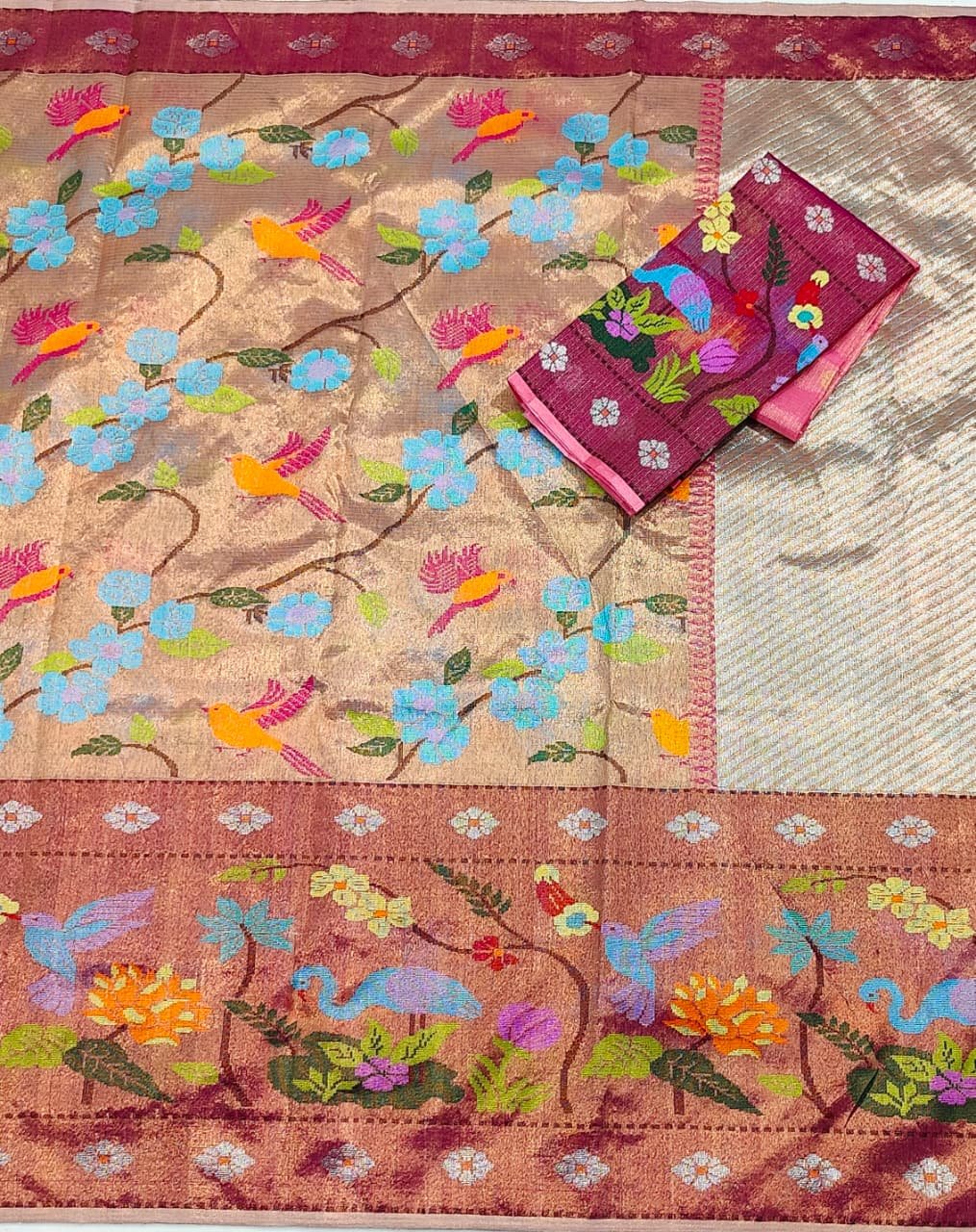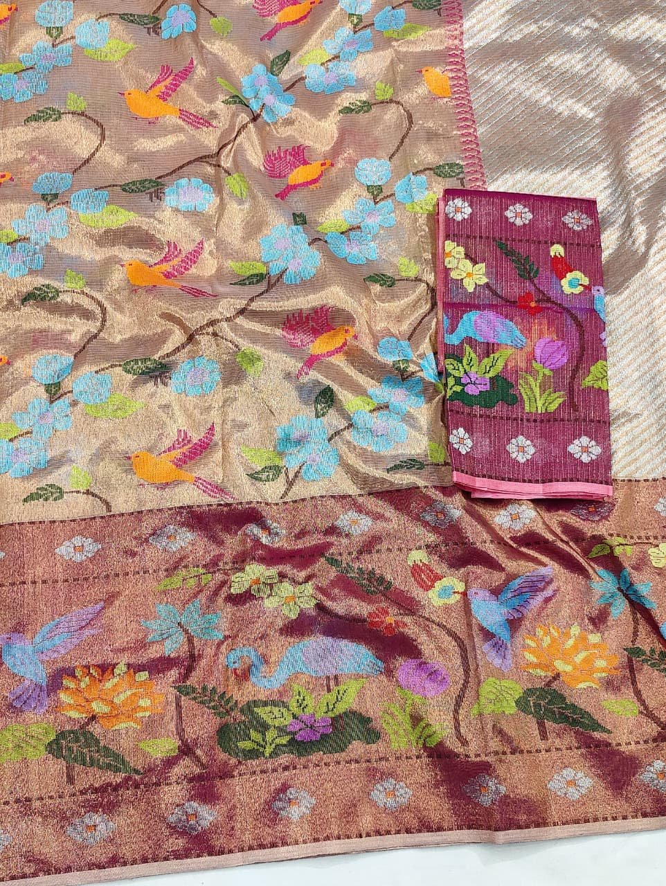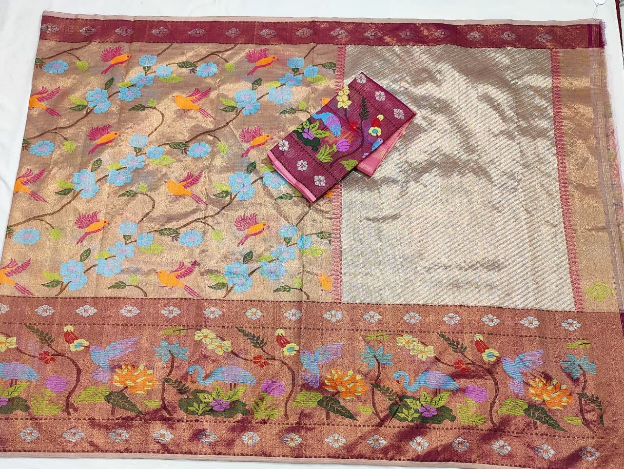 PURE GOLD DUBBLE TISSUE BIG PAITHANI BORDER WITH ALL OVER JAAL ZARIKOTA HANDLOOM SAREE_T-340