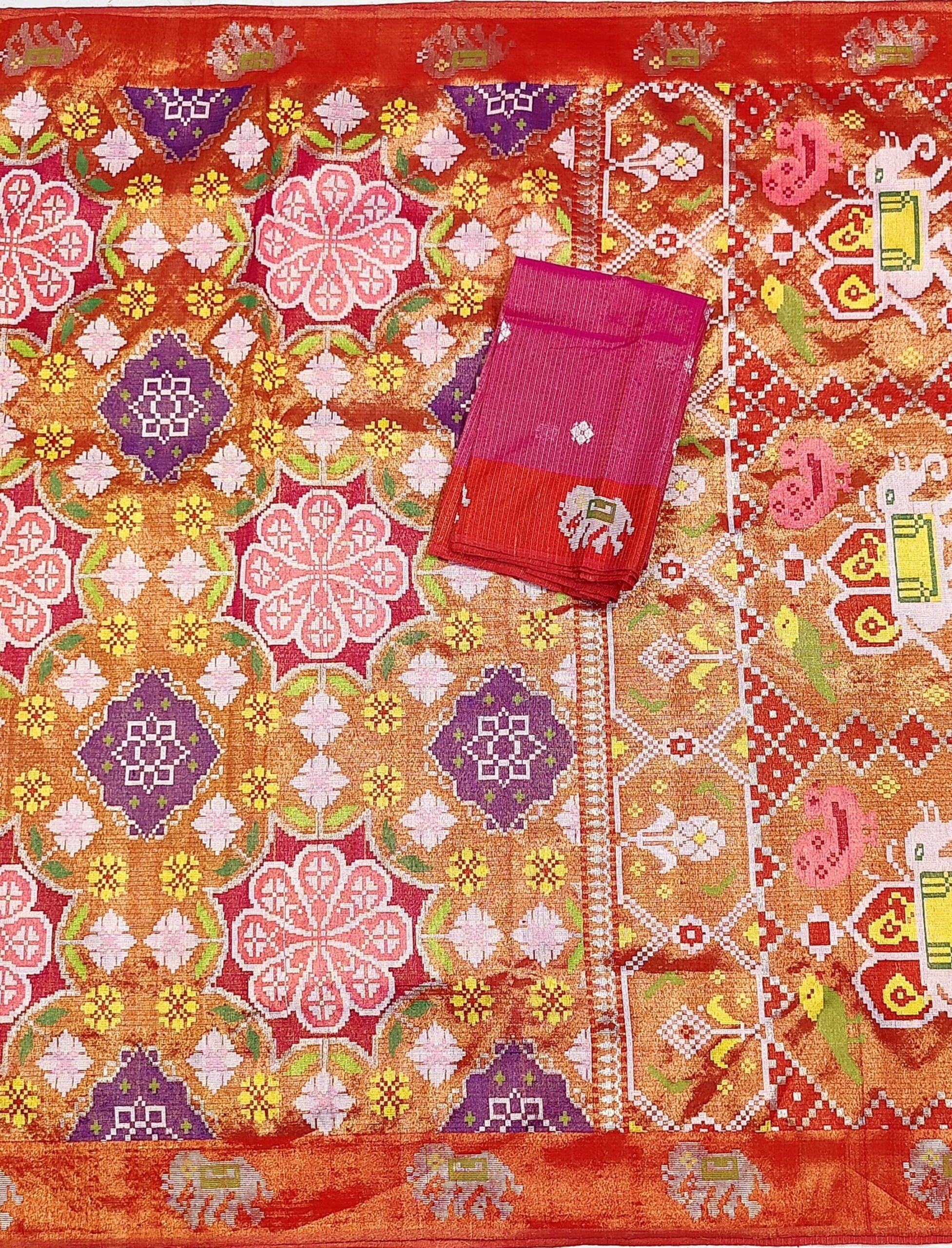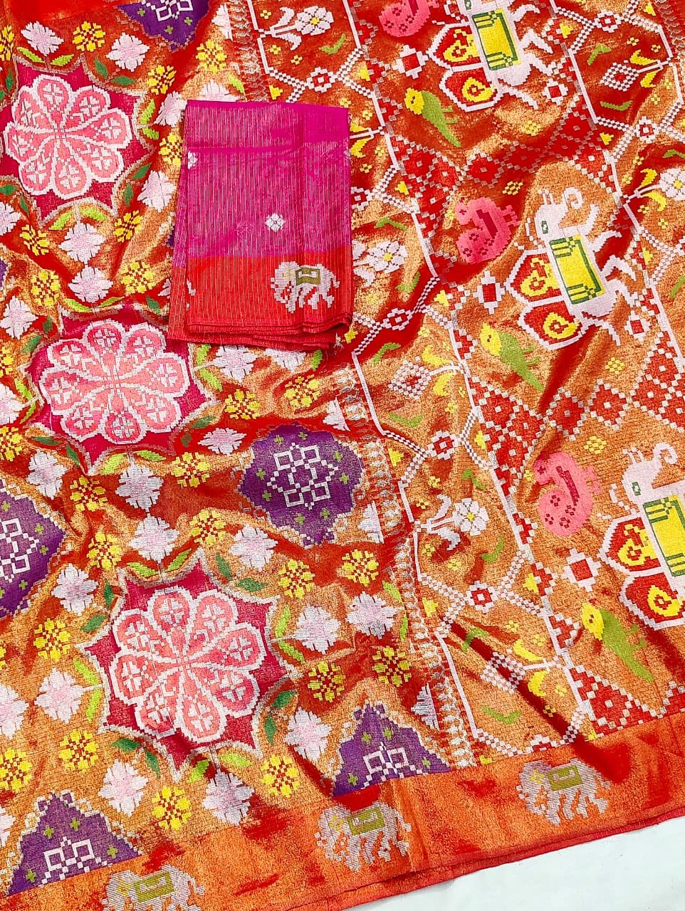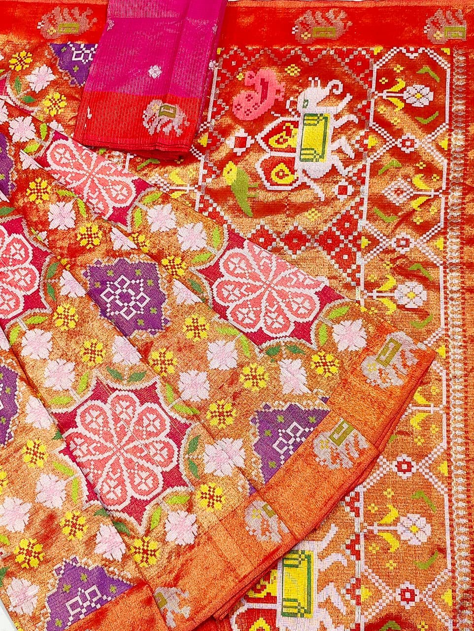 PURE GOLD DUBBLE TISSUE PATOLA DESIGN ZARIKOTA HANDLOOM SAREE_T-332