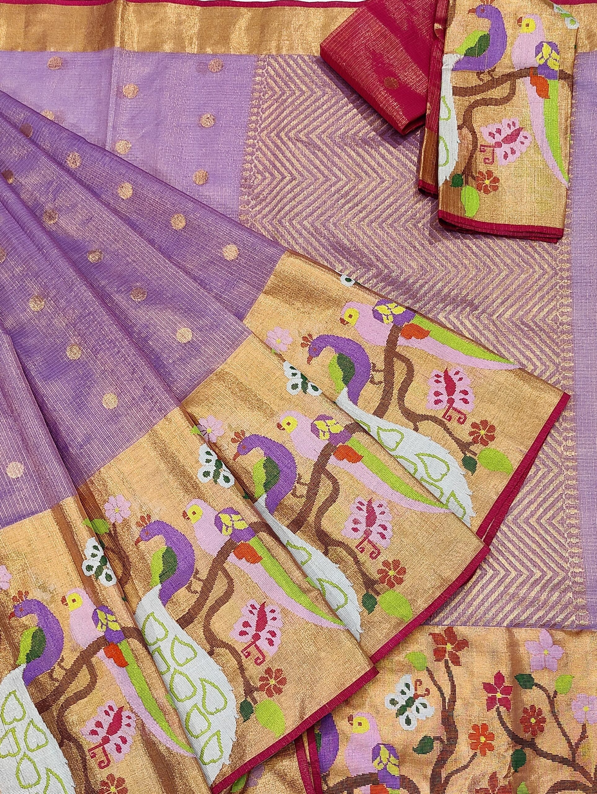 PURE GOLD TISEUE BIG PAITHANI BORDER ZARIKOTA HANDLOOM SAREE WITH BLOUSE_T-161