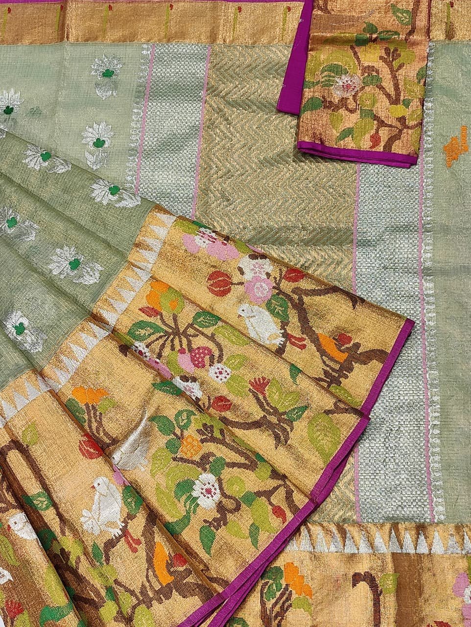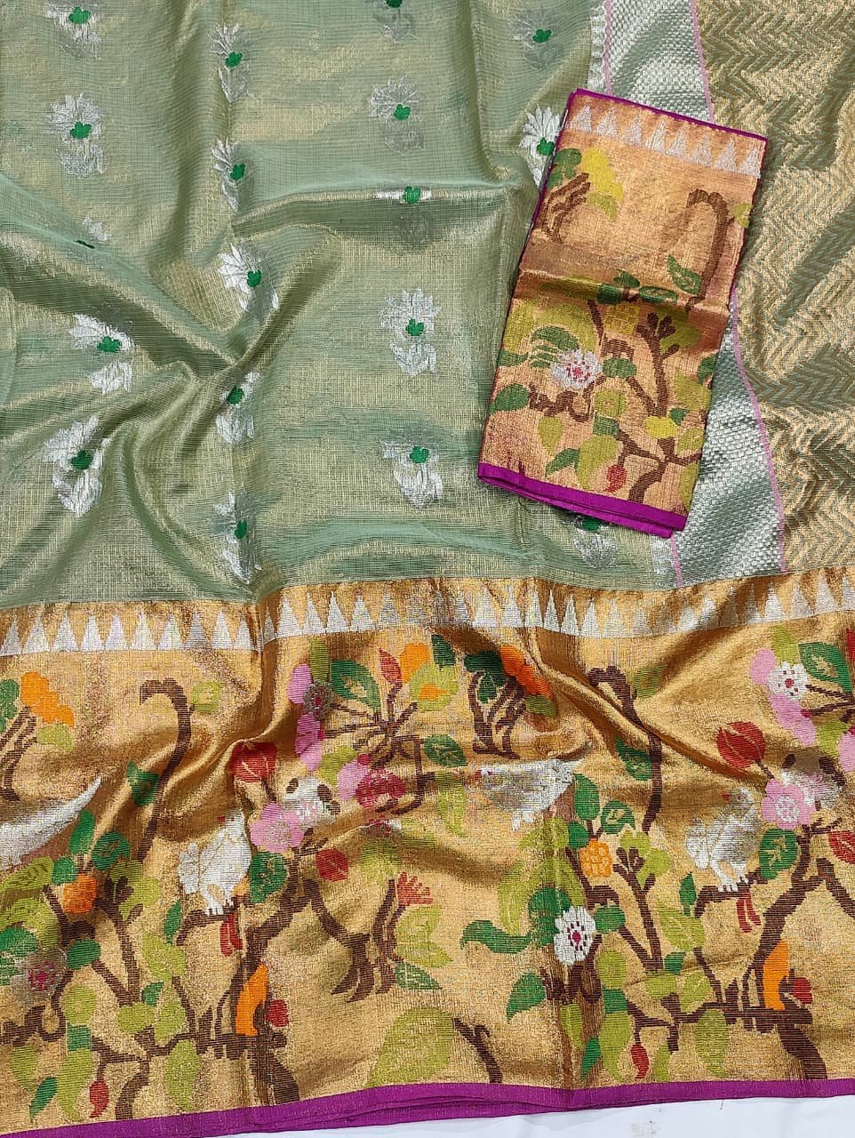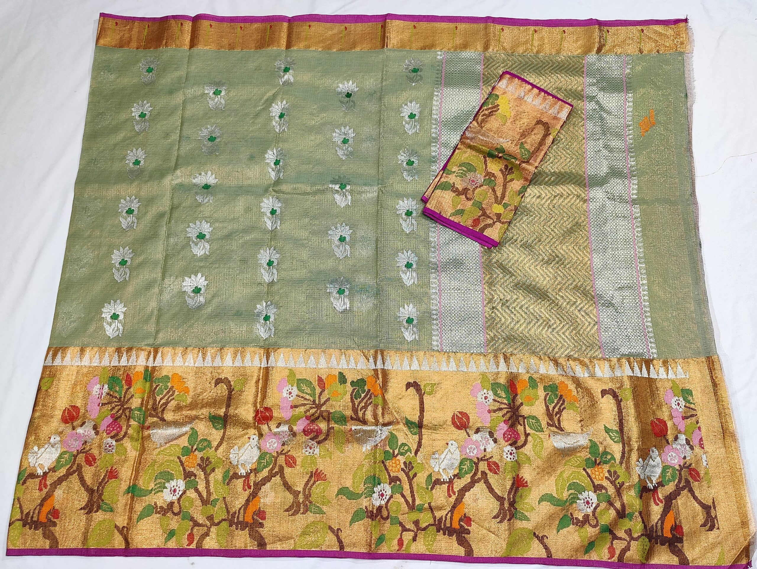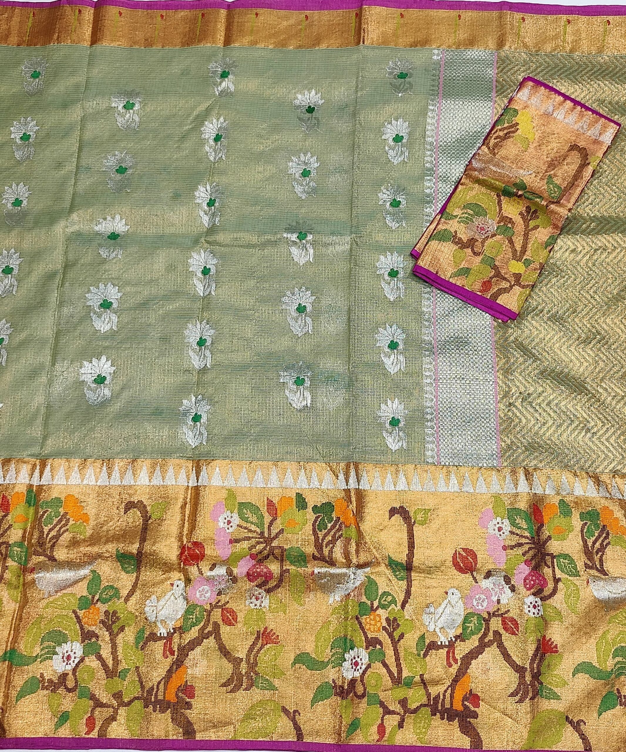 PURE GOLD TISEUE BIG PAITHANI BORDER ZARIKOTA HANDLOOM SAREE WITH BLOUSE_T-195