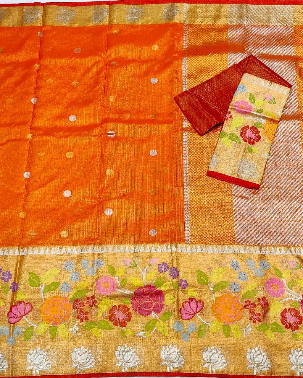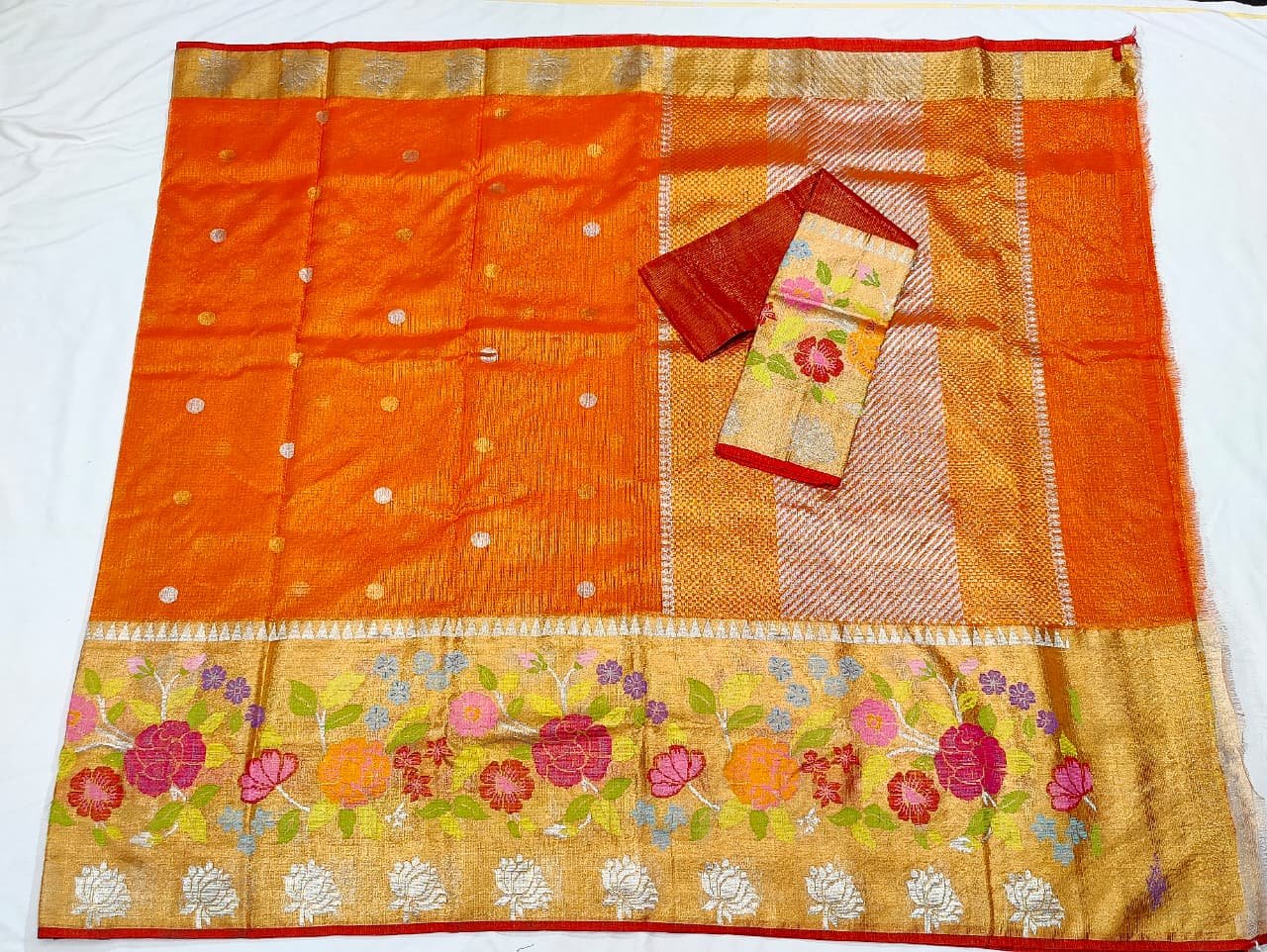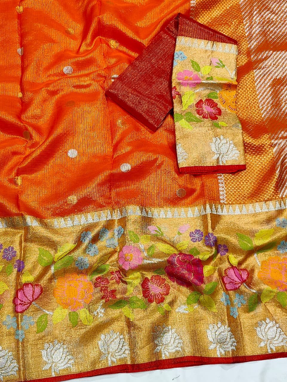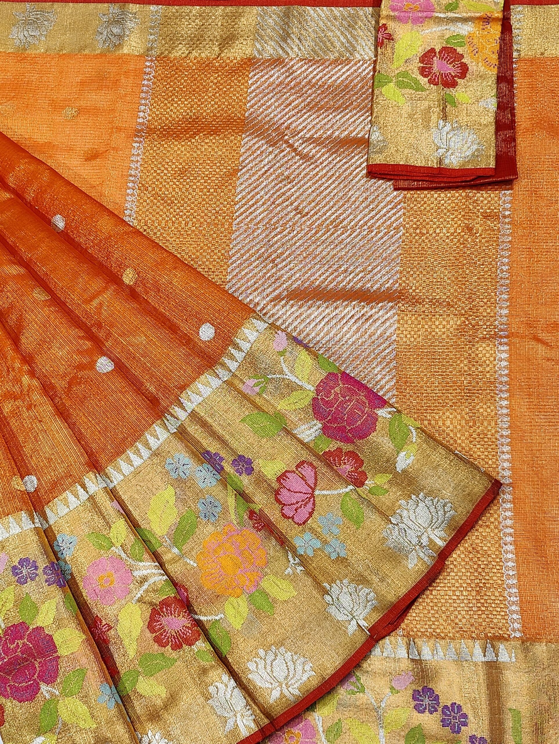 PURE GOLD TISEUE BIG PAITHANI BORDER ZARIKOTA HANDLOOM SAREE WITH BLOUSE_T-199