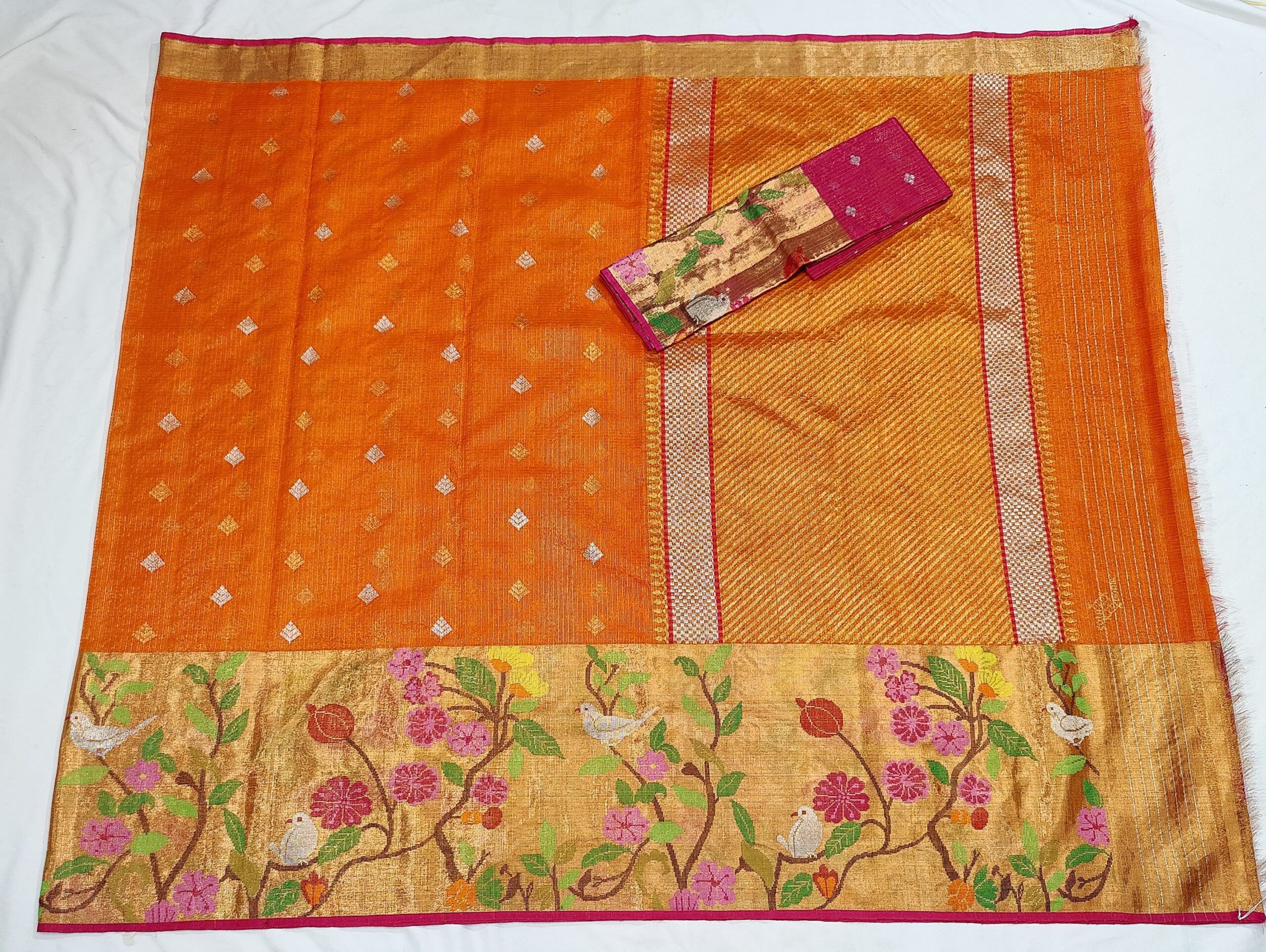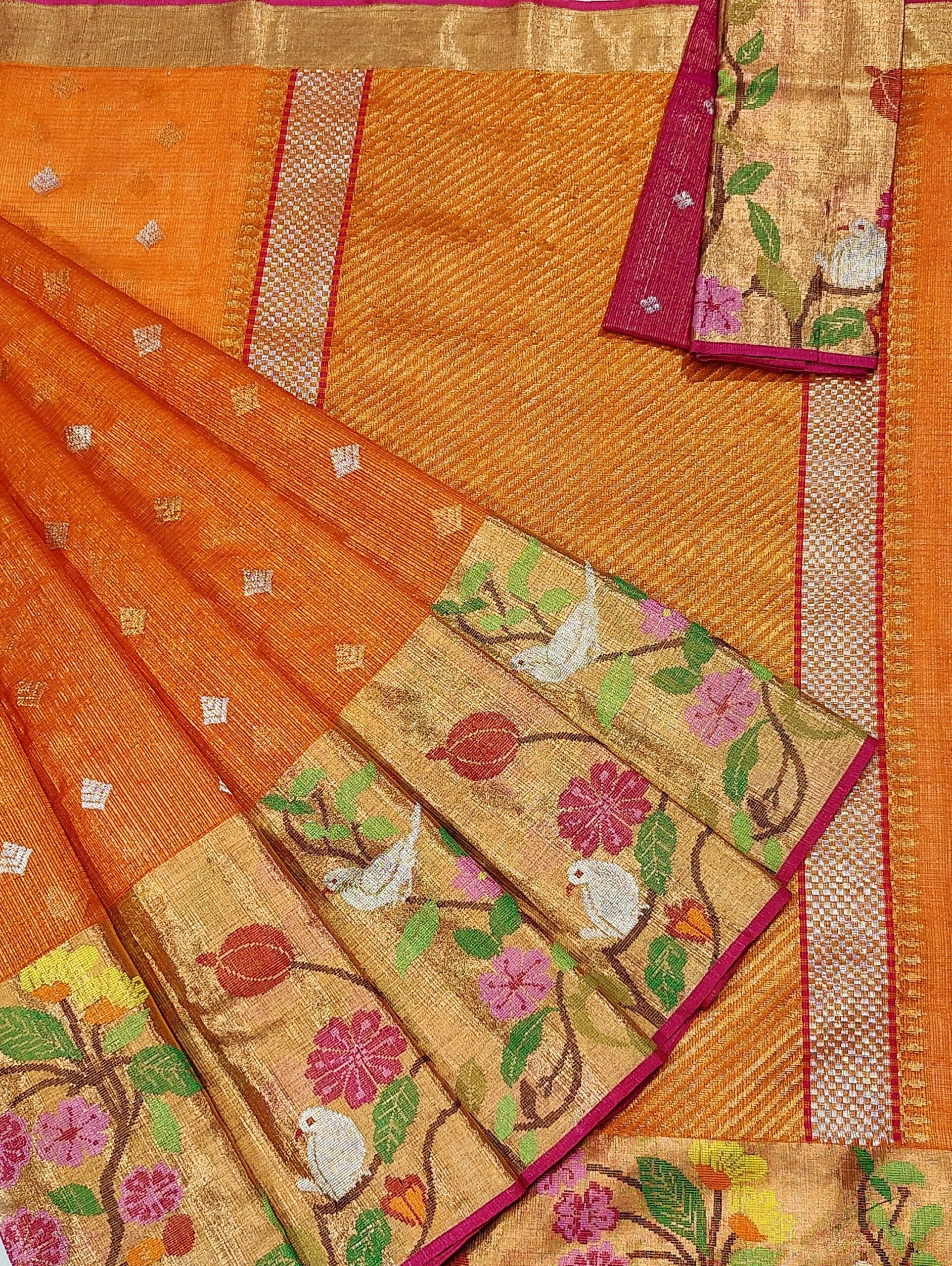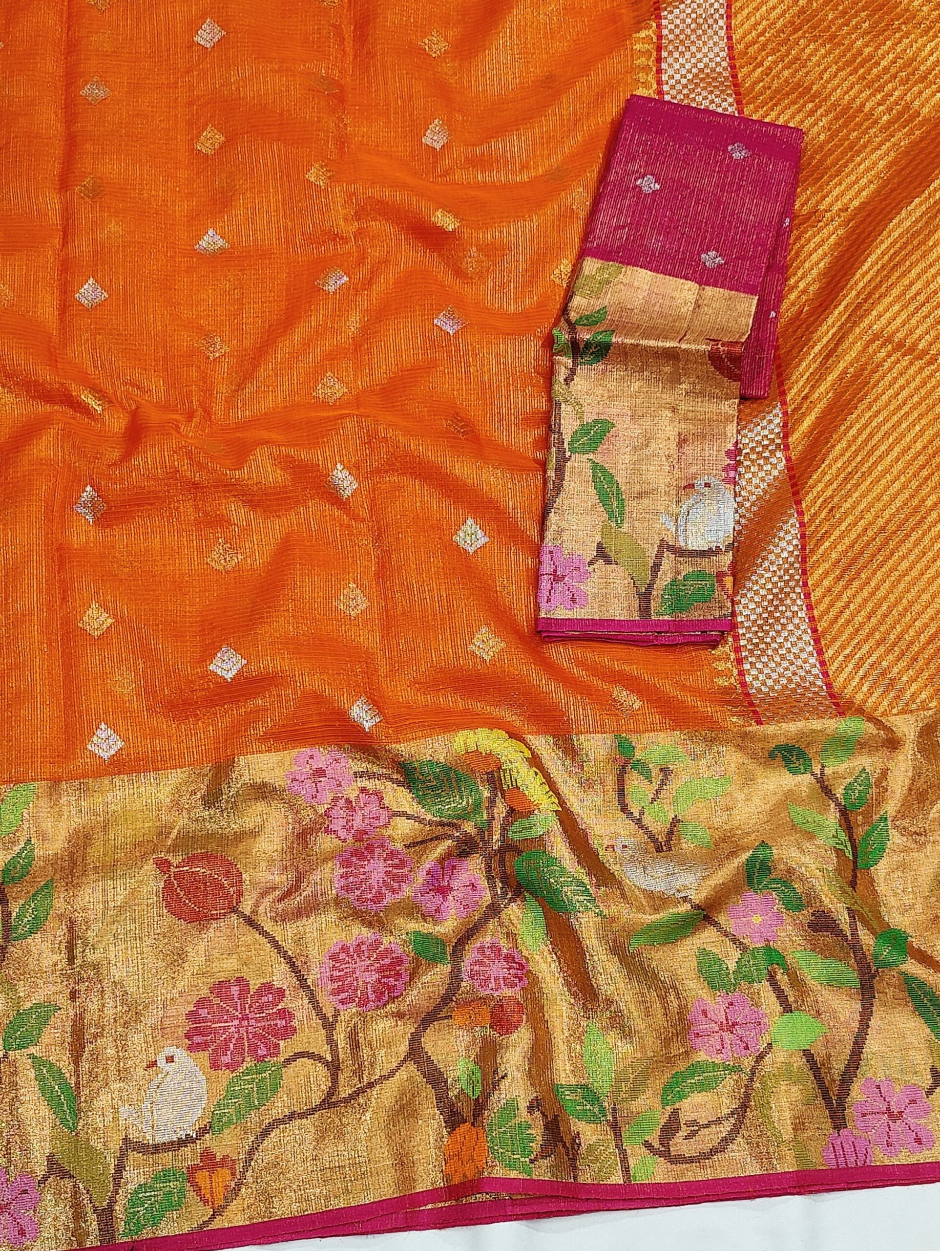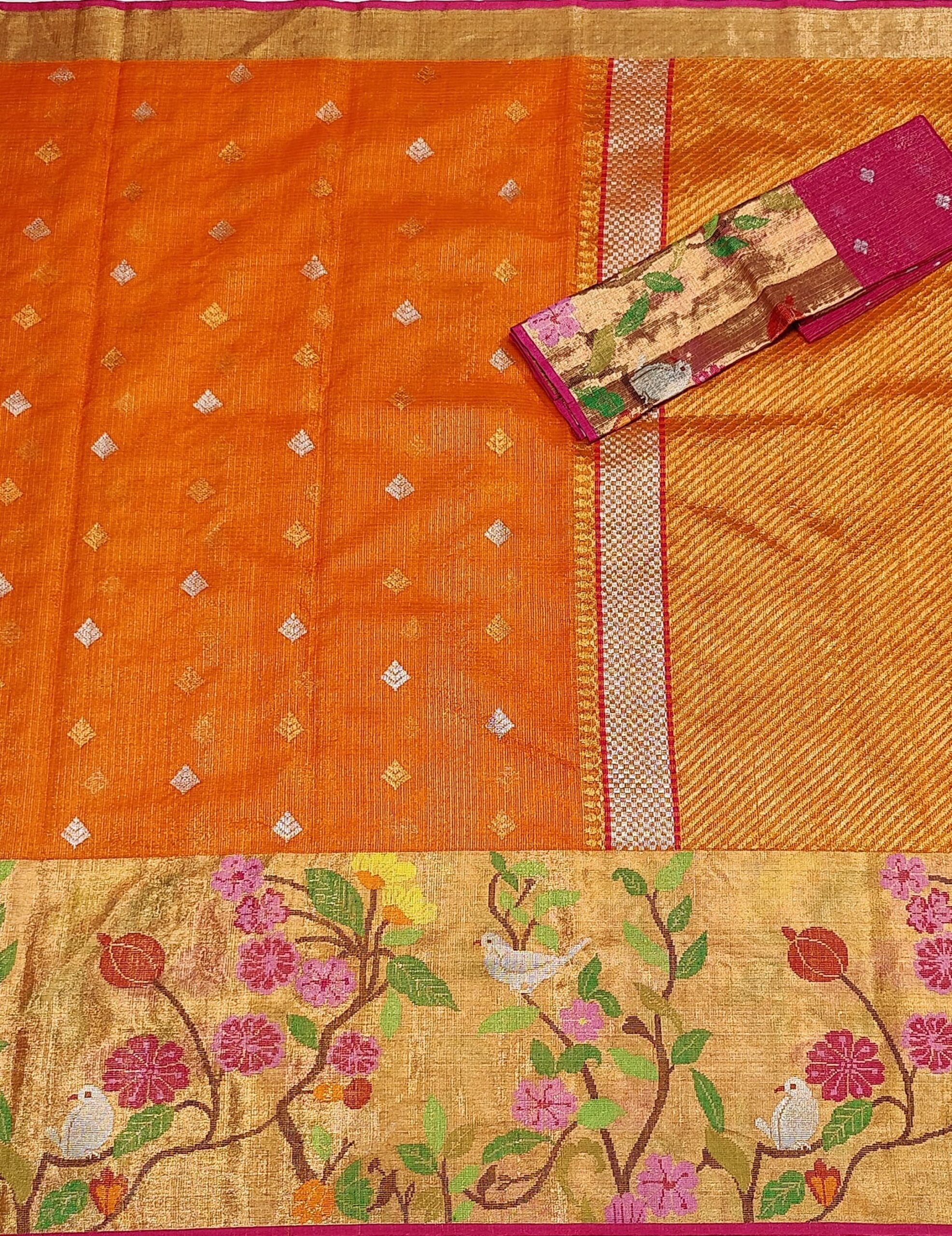 PURE GOLD TISEUE BIG PAITHANI BORDER ZARIKOTA HANDLOOM SAREE WITH BLOUSE_T-213