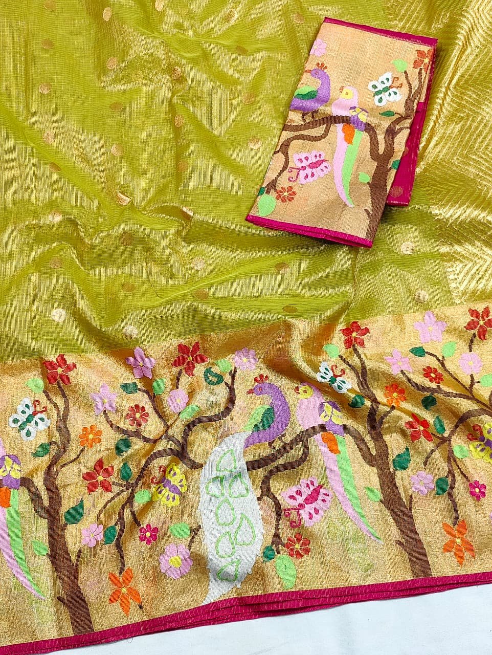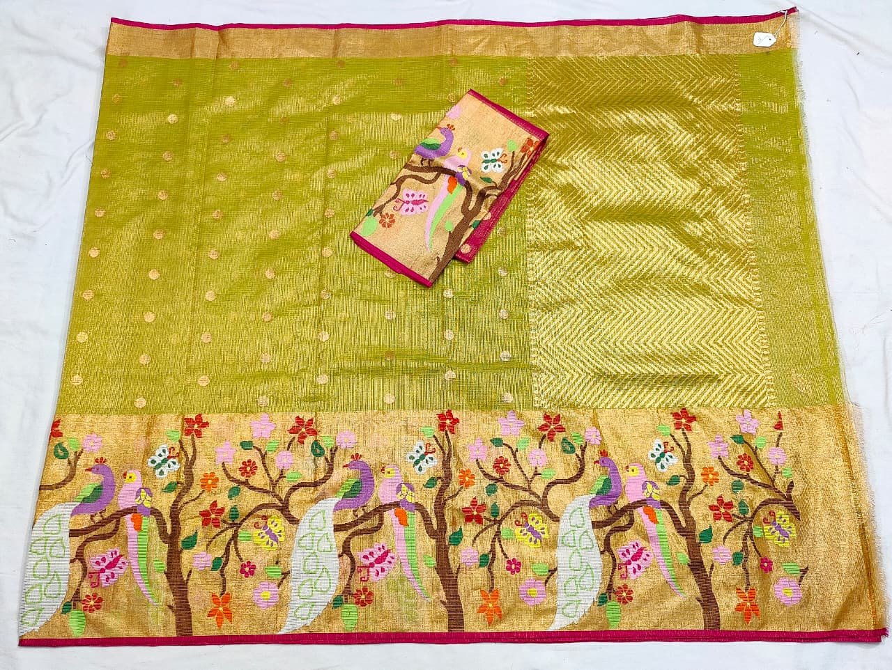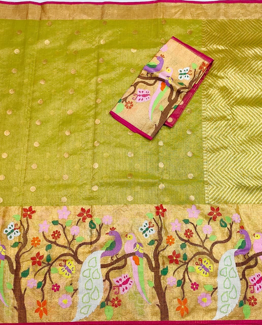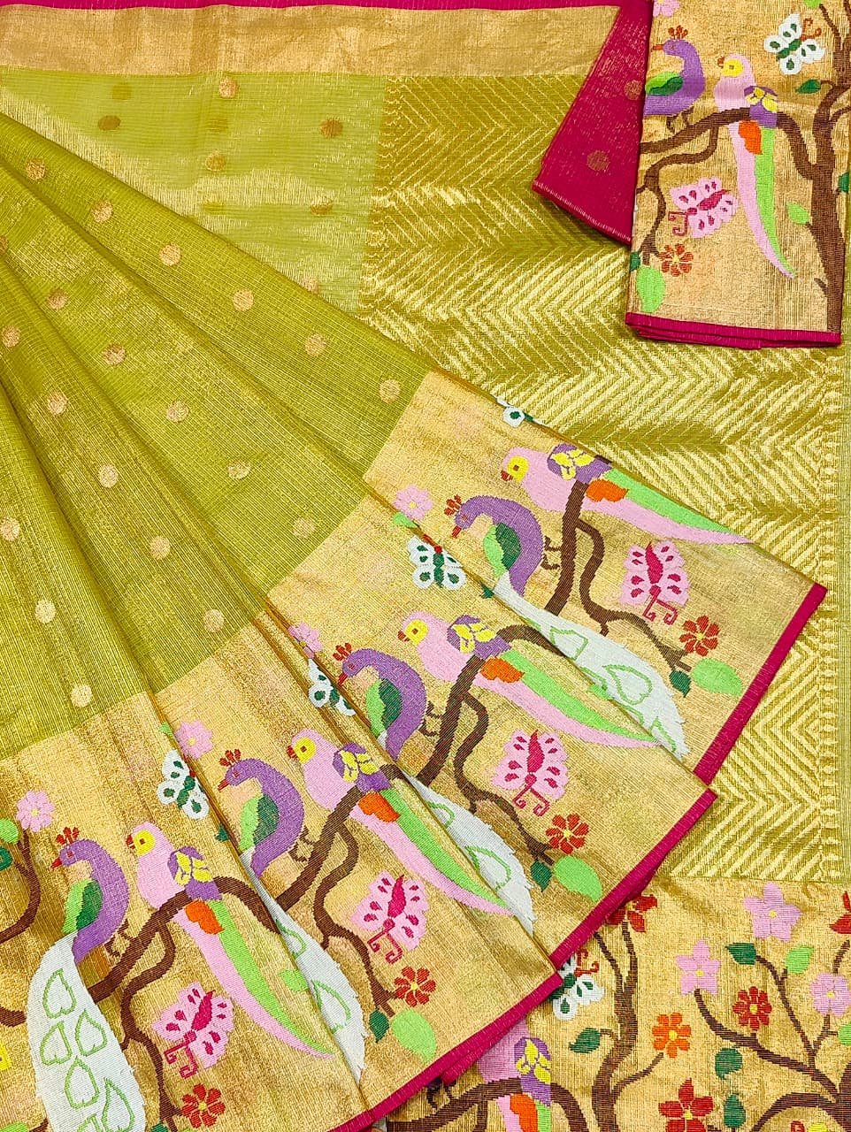 PURE GOLD TISEUE BIG PAITHANI BORDER ZARIKOTA HANDLOOM SAREE WITH BLOUSE_T-216