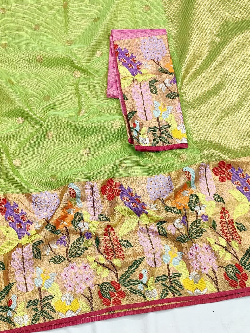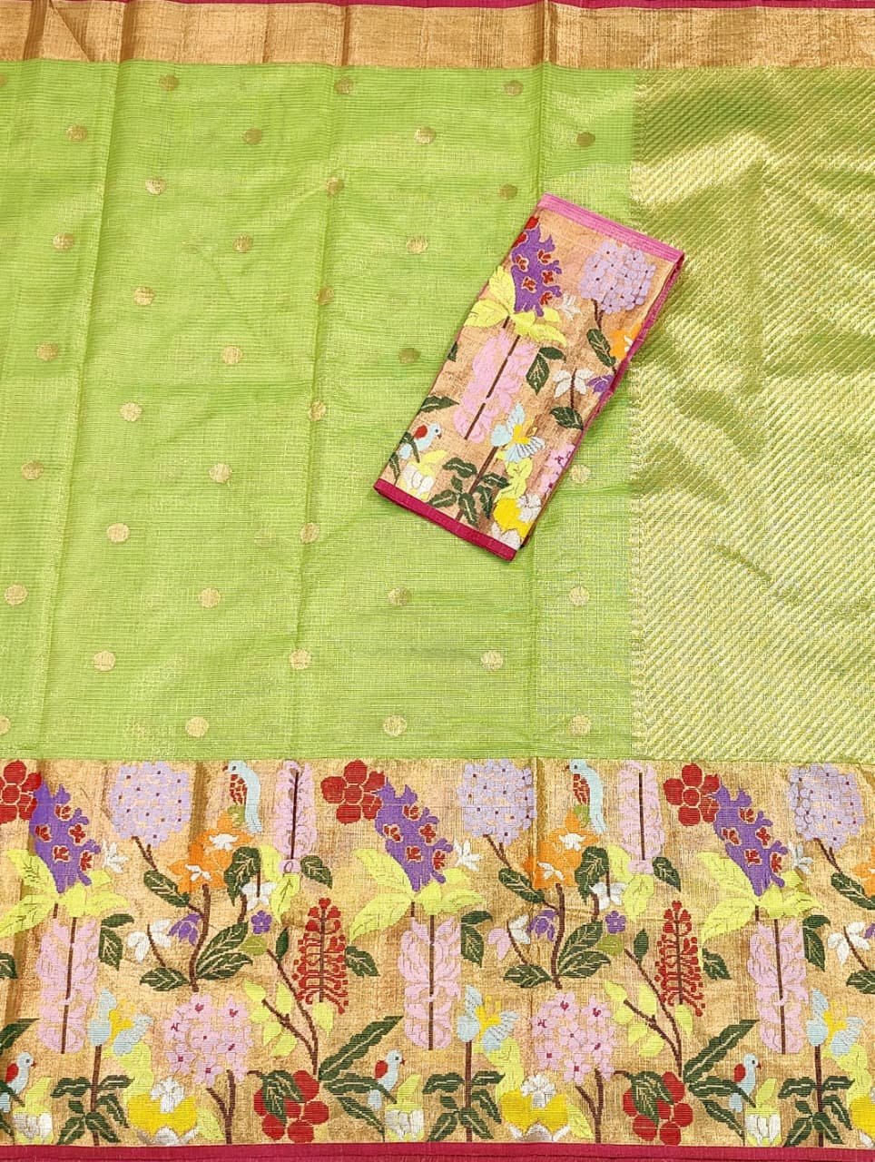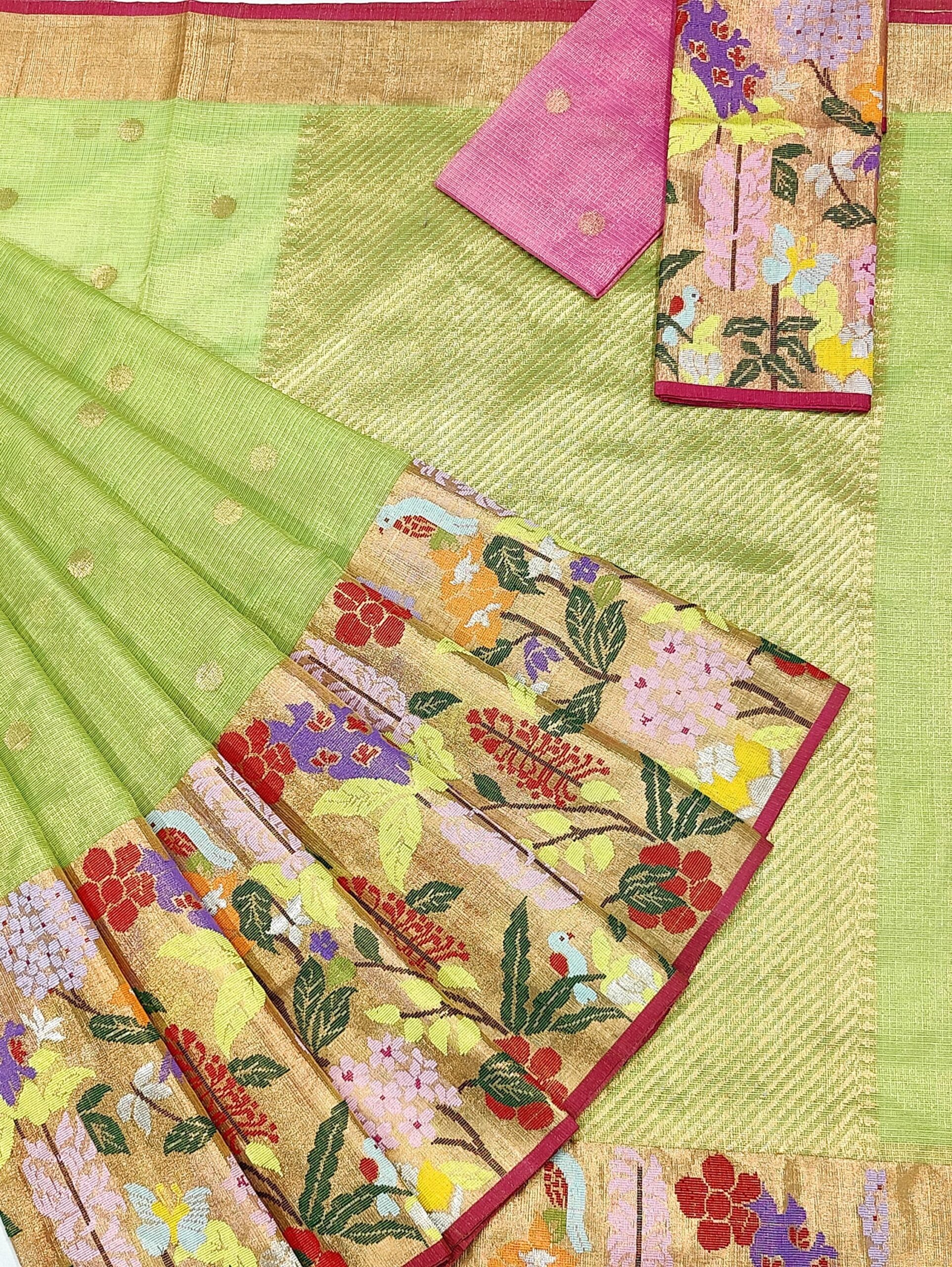 PURE GOLD TISSUE BIG PAITHANI BORDER ZARIKOTA HANDLOOM SAREE WITH BLOUSE_T-229