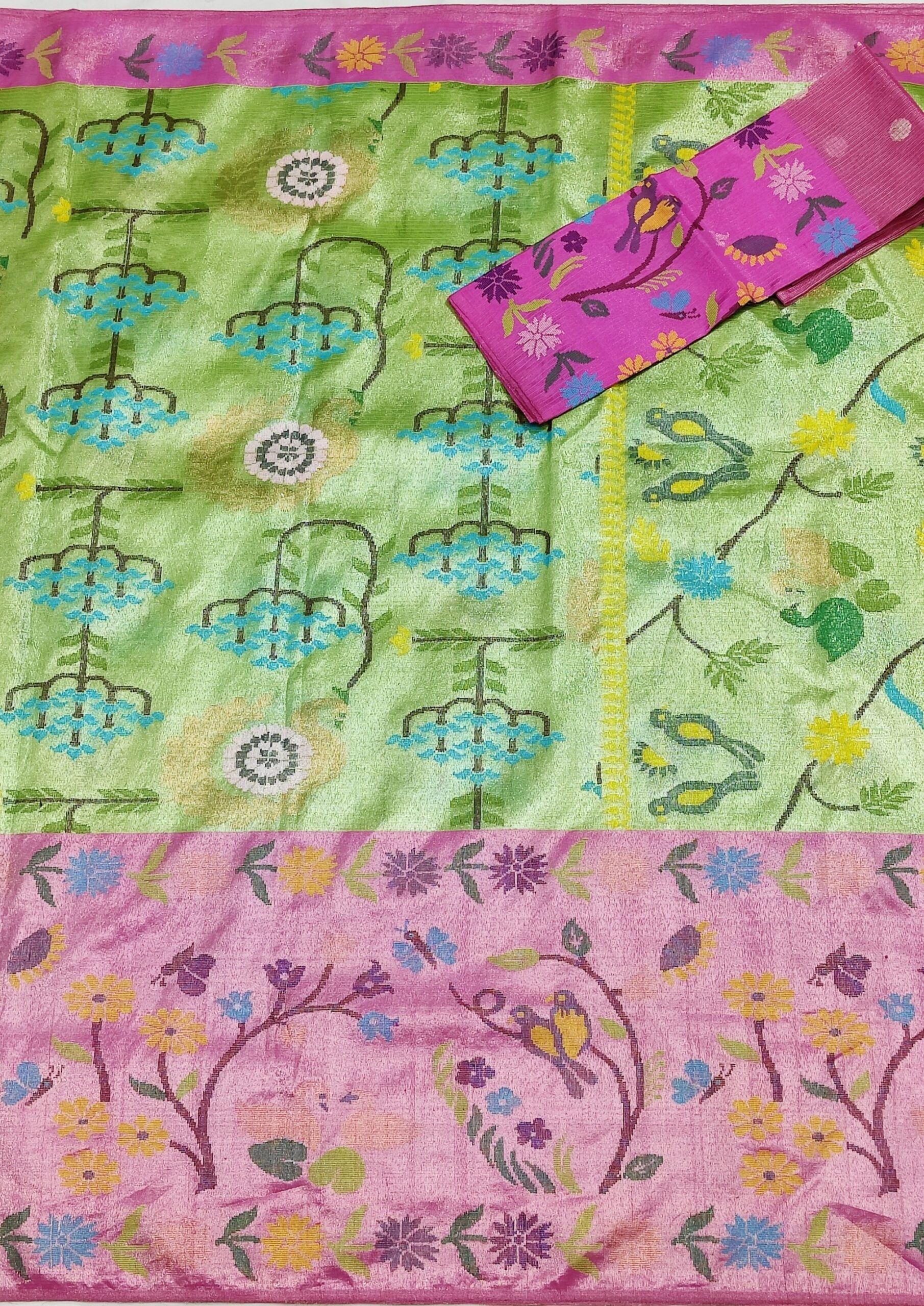 PURE SILVER DOUBLE TISSUE BIG PAITHANI BORDER WITH ALL OVER JAAL ZARIKOTA HANDLOOM SAREE_T-167