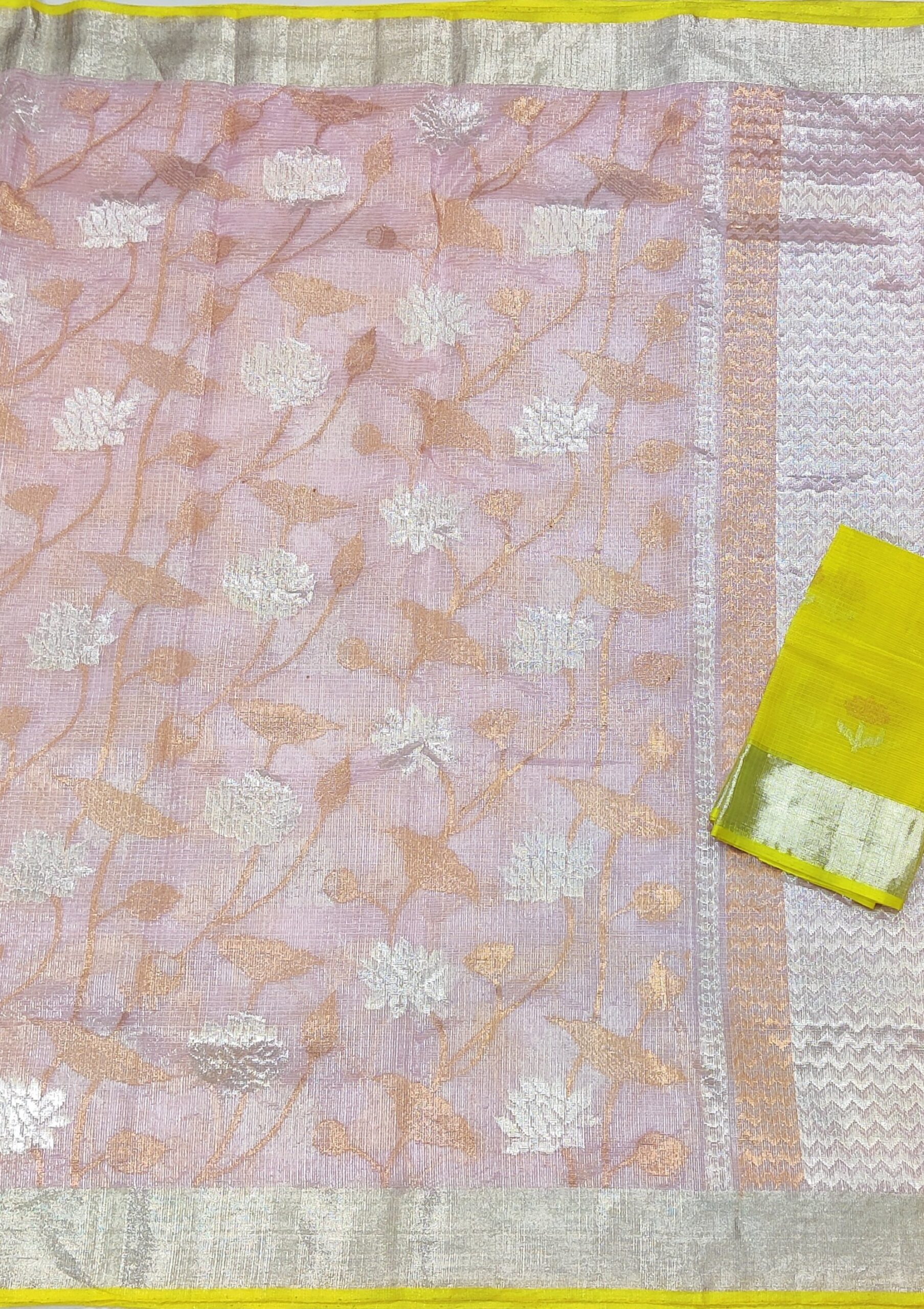 PURE SILVER TISEUE ALL OVER JAAL ZARIKOTA HANDLOOM SAREE WITH BLOUSE_T-66