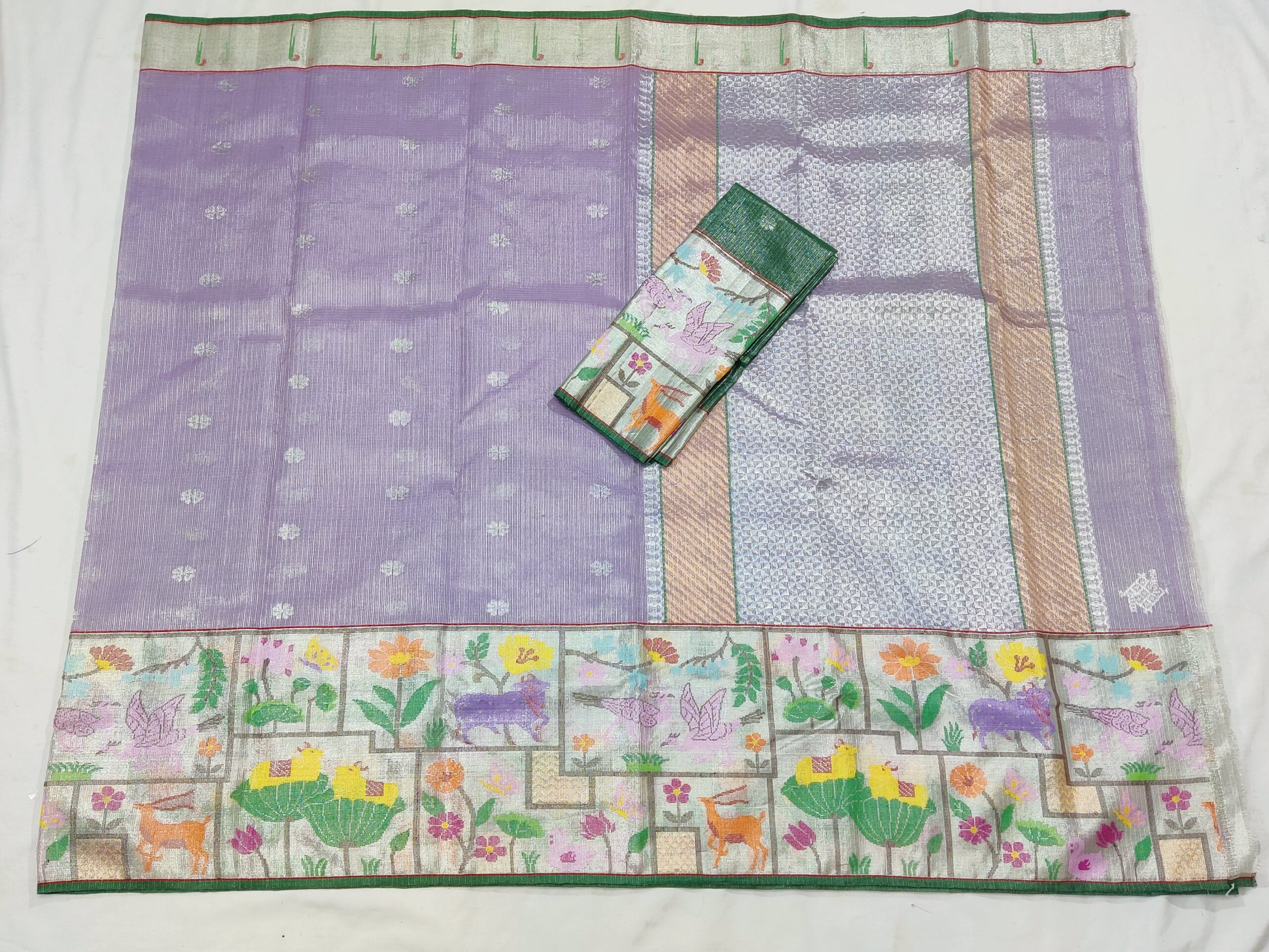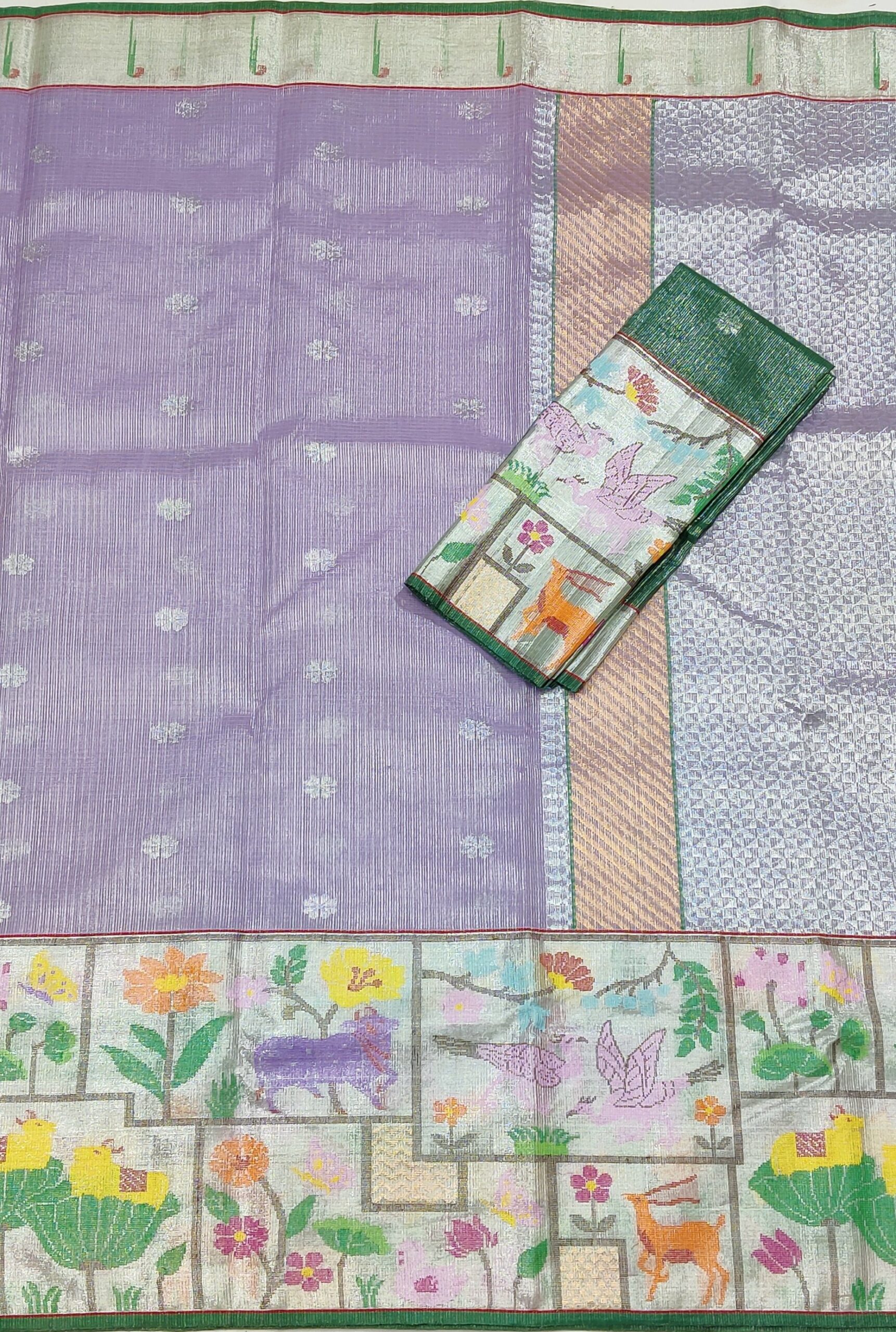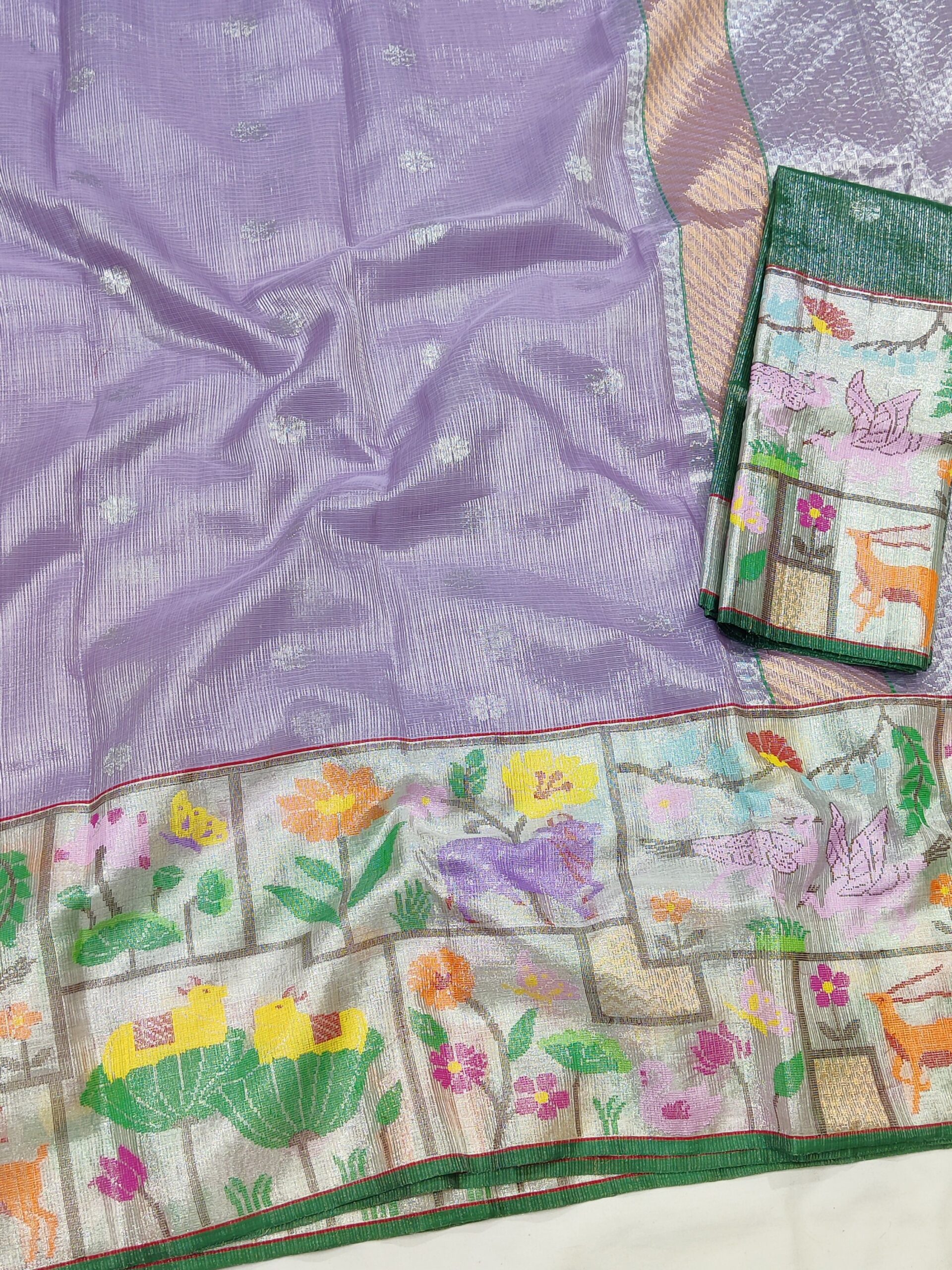 PURE SILVER TISEUE BIG PAITHANI BORDER ZARIKOTA HANDLOOM SAREE WITH BLOUSE_T-24