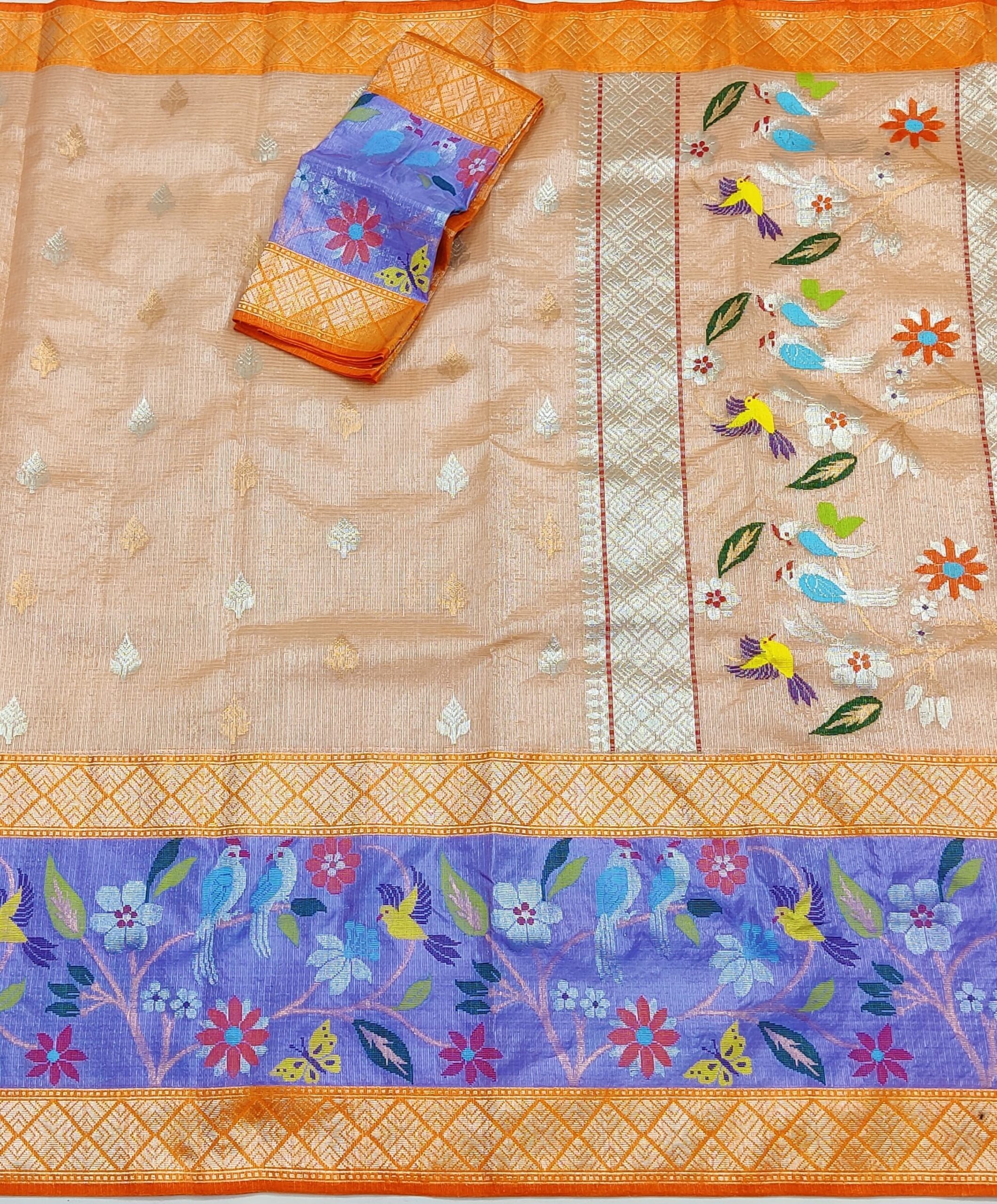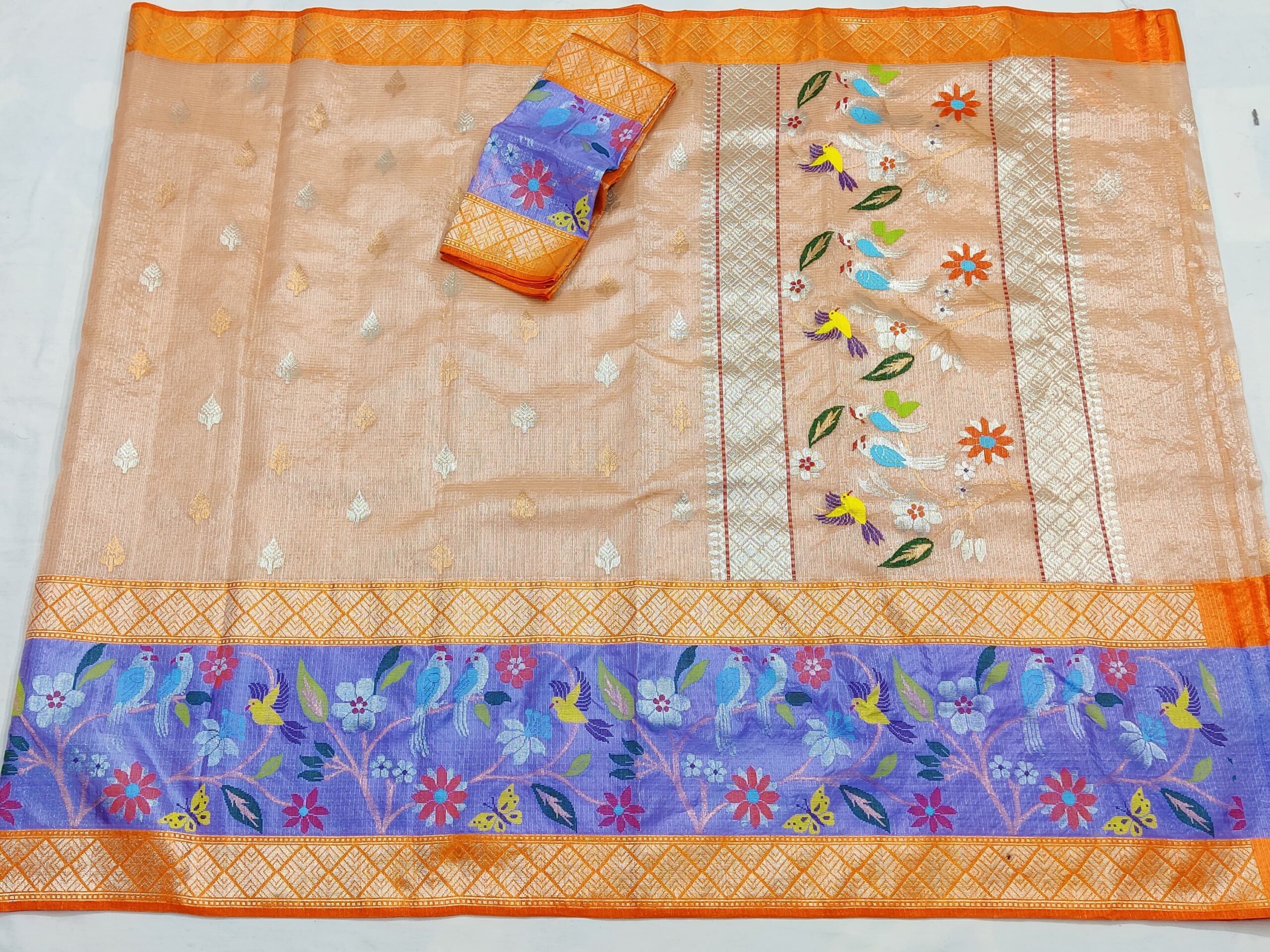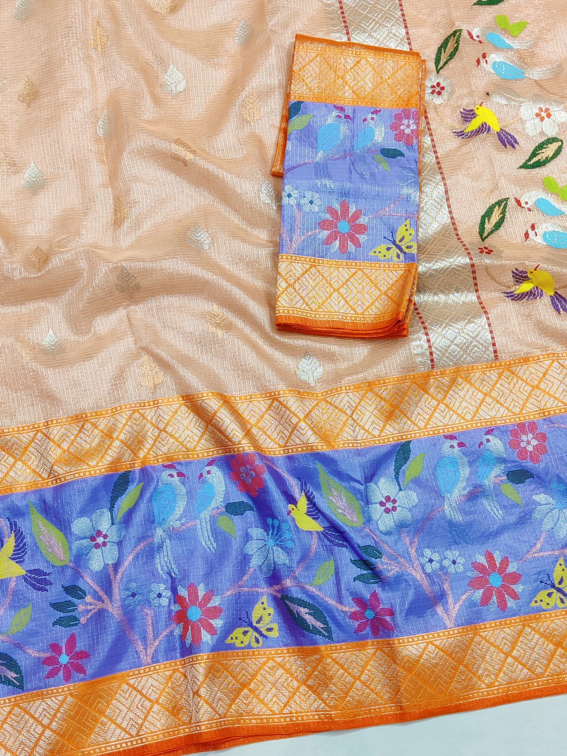 PURE SILVER TISSUE BIG PAITHANI BORDER ZARIKOTA HANDLOOM SAREE WITH BLOUSE_T-227