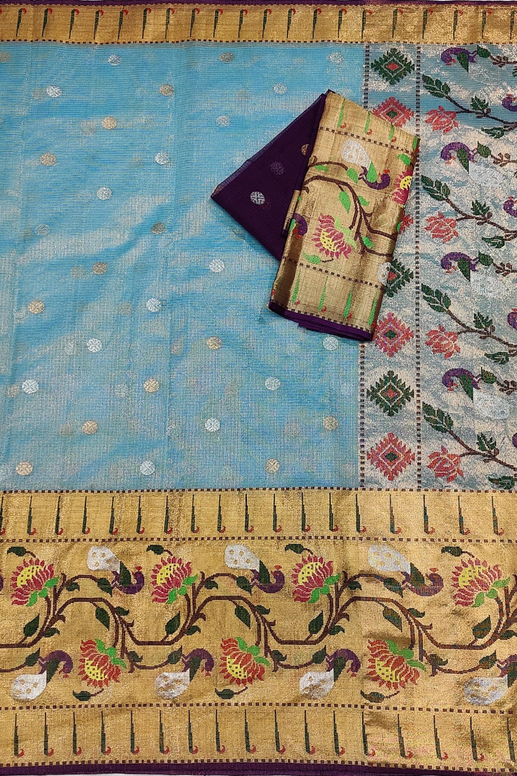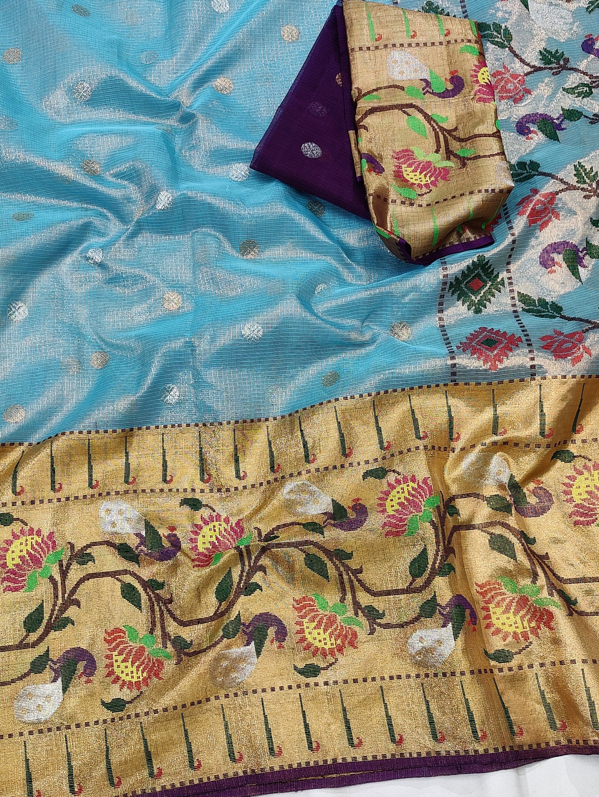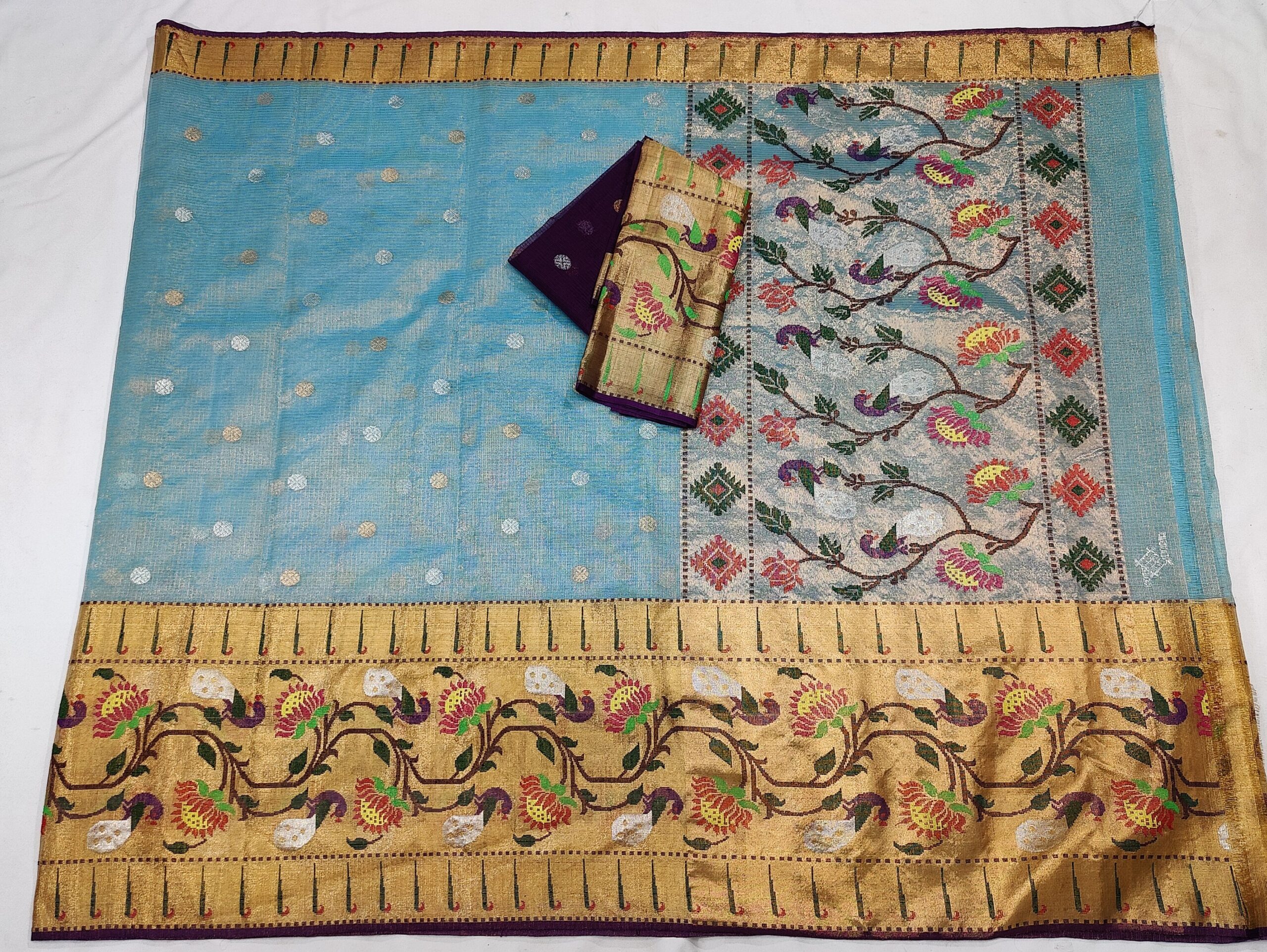 PURE GOLD TISSUE BIG PAITHANI BORDER ZARIKOTA HANDLOOM SAREE WITH BLOUSE_T 112