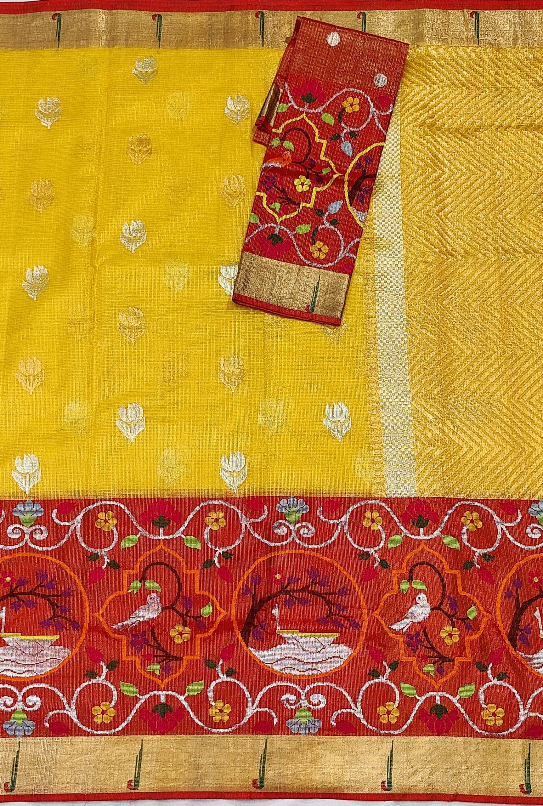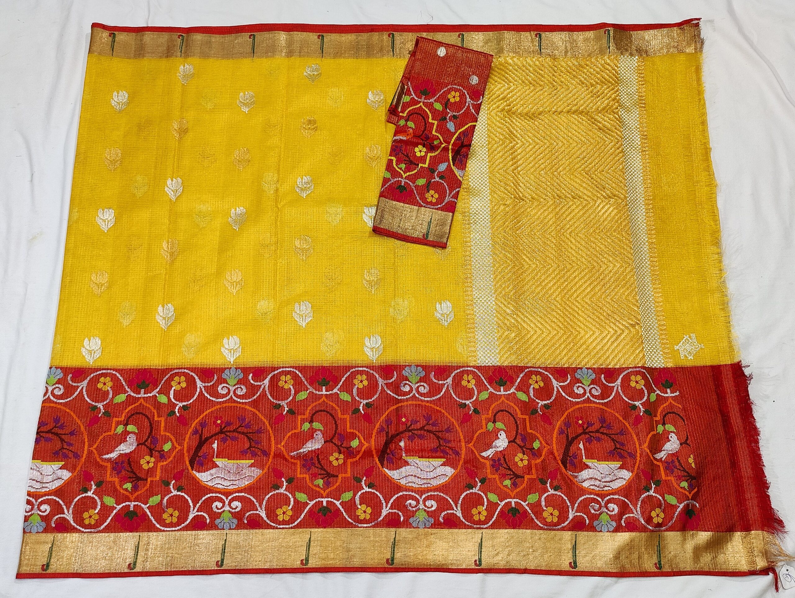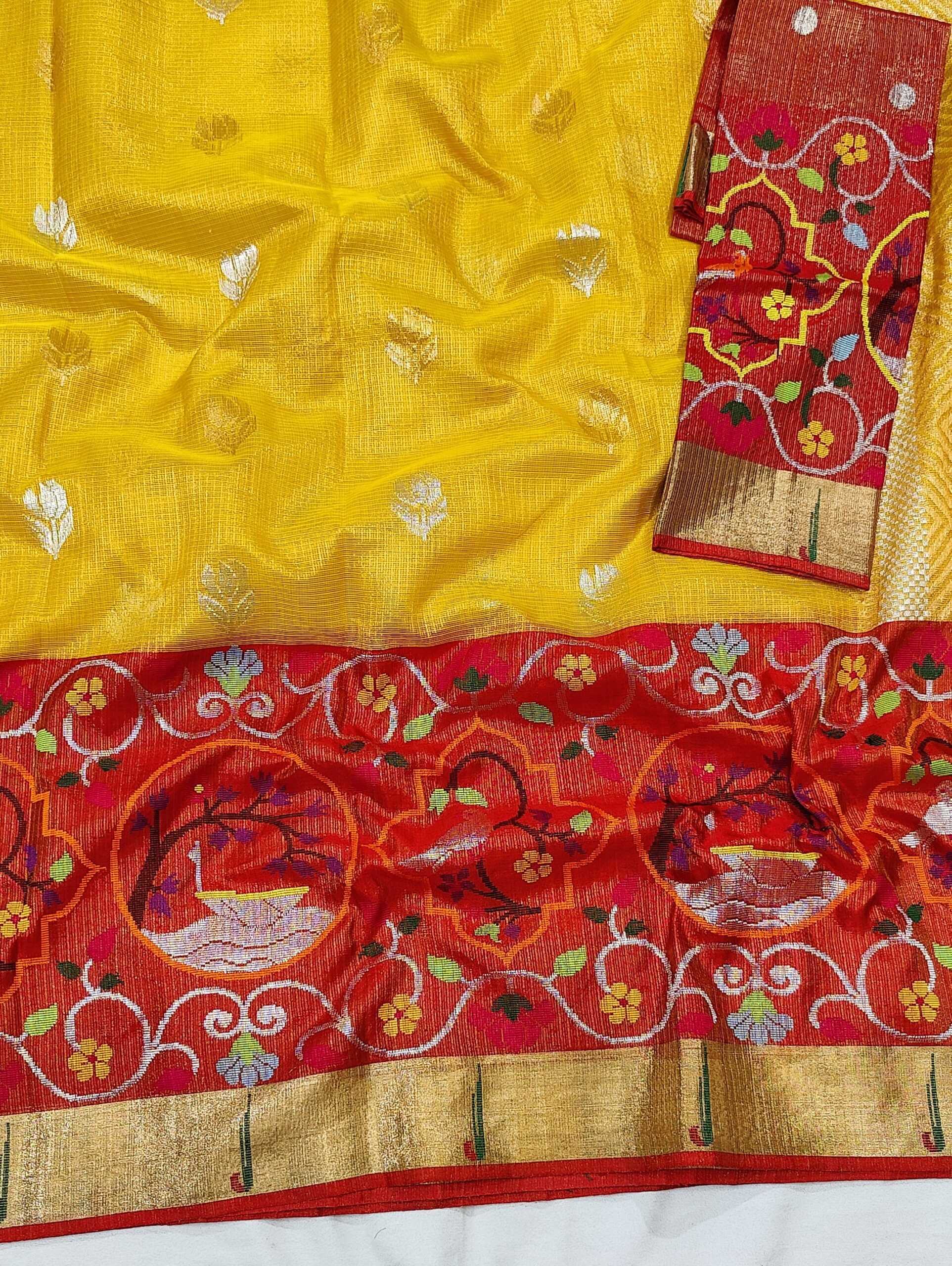 PURE GOLD TISSUE BIG PAITHANI BORDER ZARIKOTA HANDLOOM SAREE WITH BLOUSE_T 143
