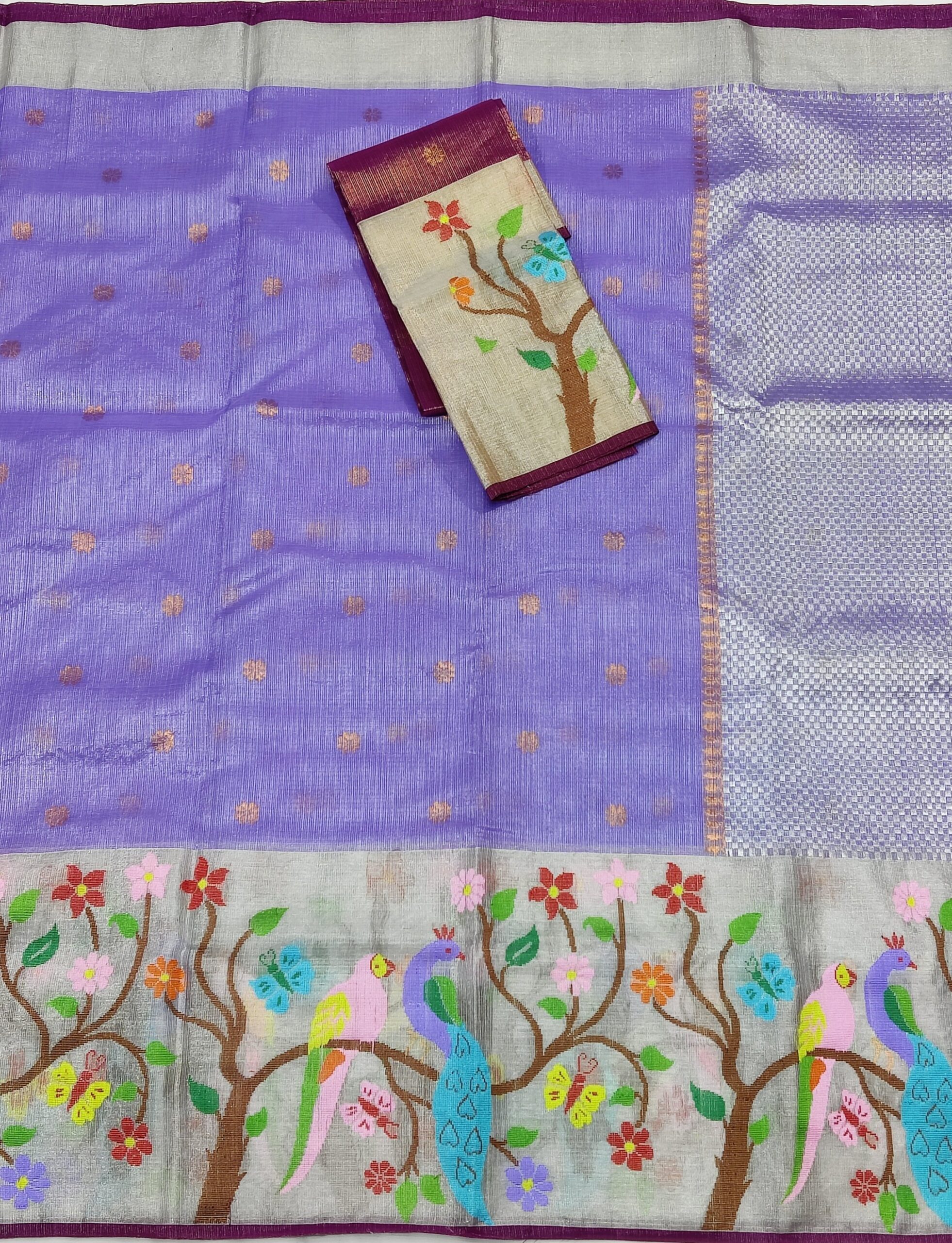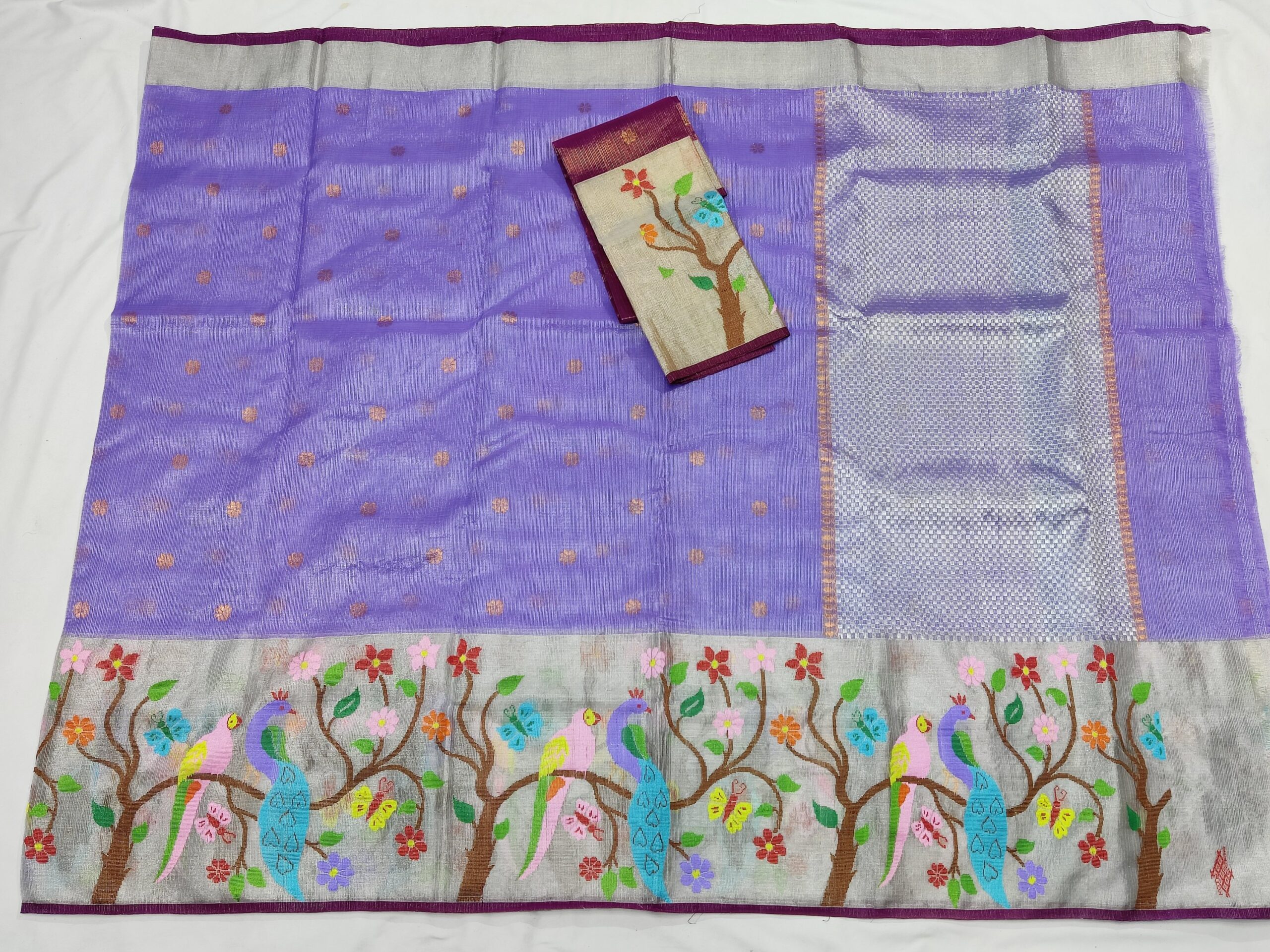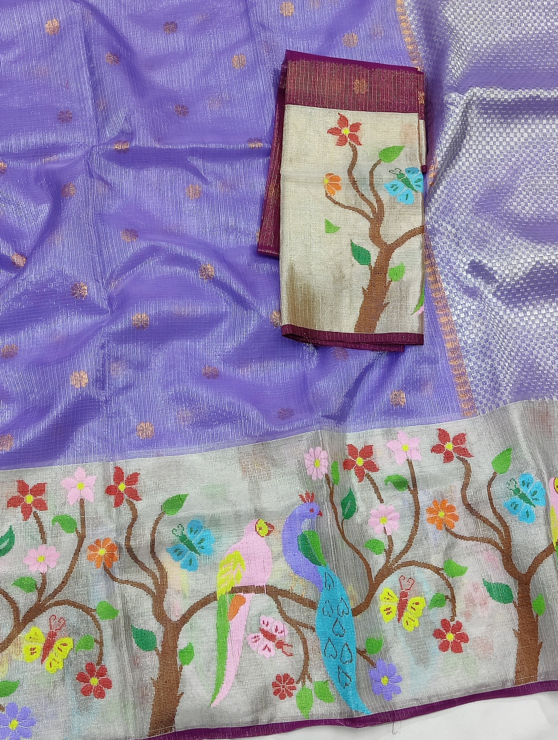 PURE SILVER TISSUE BIG PAITHANI BORDER ZARIKOTA HANDLOOM SAREE WITH BLOUSE_T 145