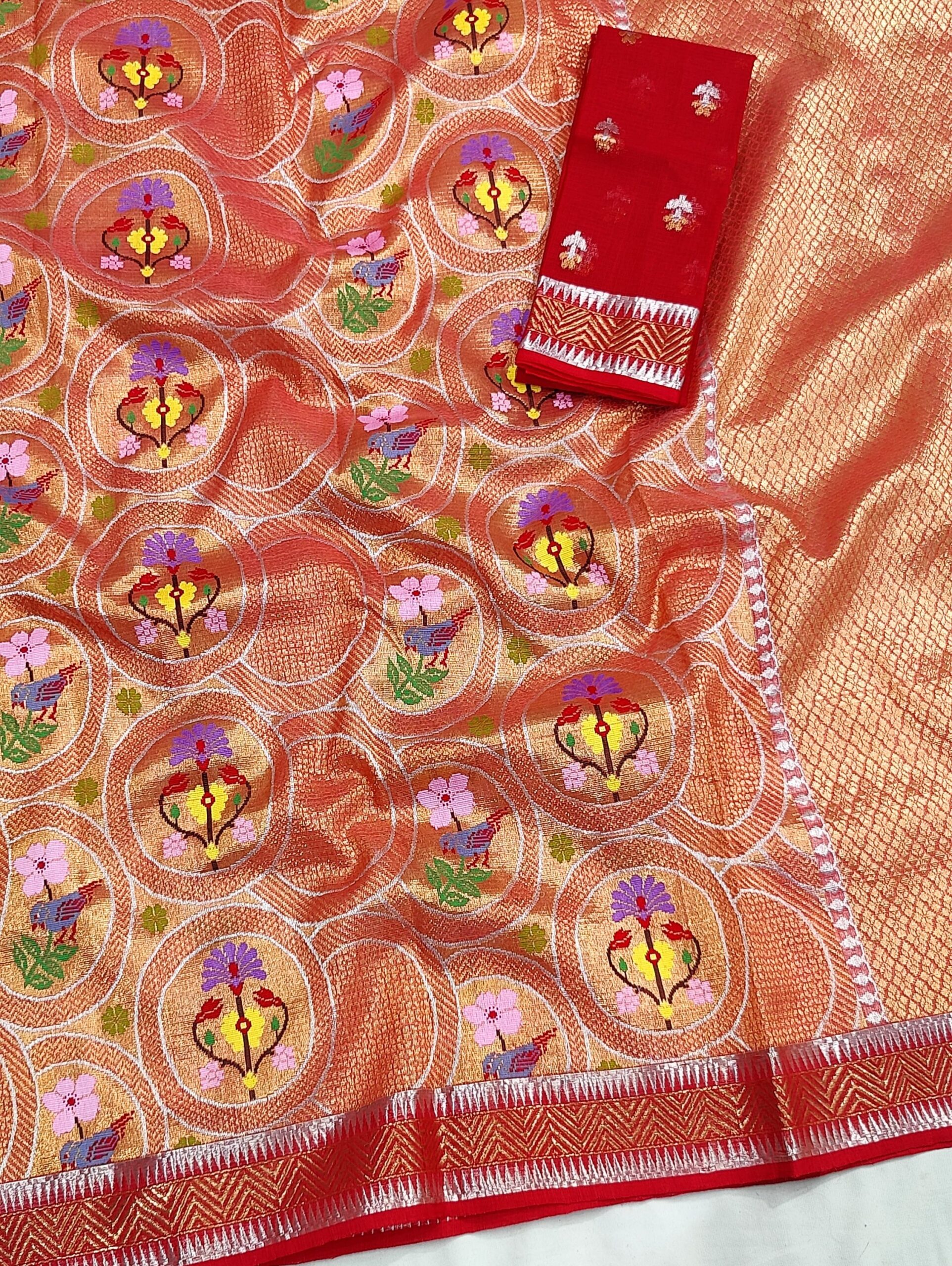 PURE ZAMAWAR WITH BOTH SIDE KANCHI BORDER ZARIKOTA HANDLOOM SAREE_Z58