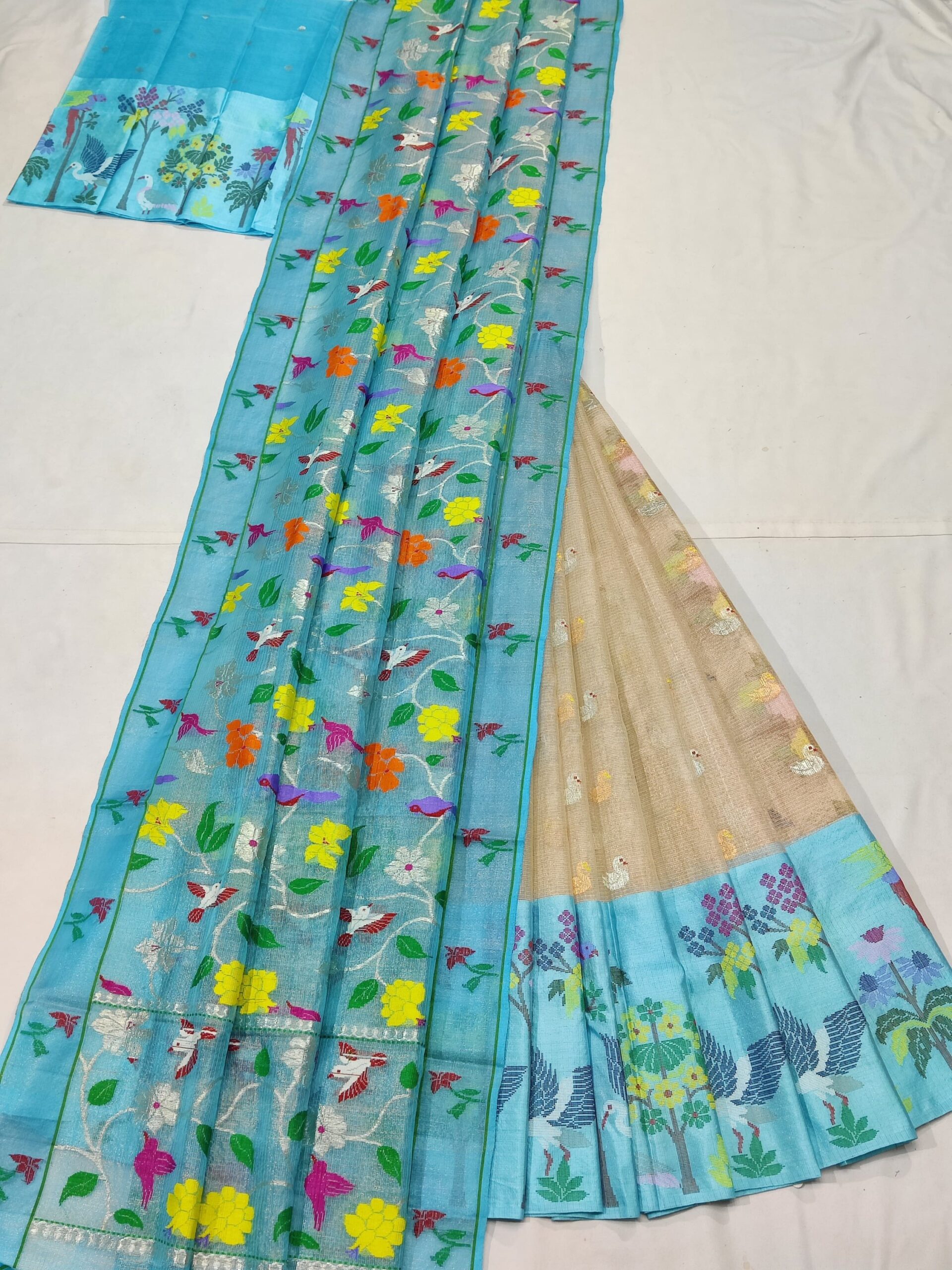 GOLD TISSUE BIG PAITHANI BORDER WITH BUTTIS BLOUSE – SIZE 1 M