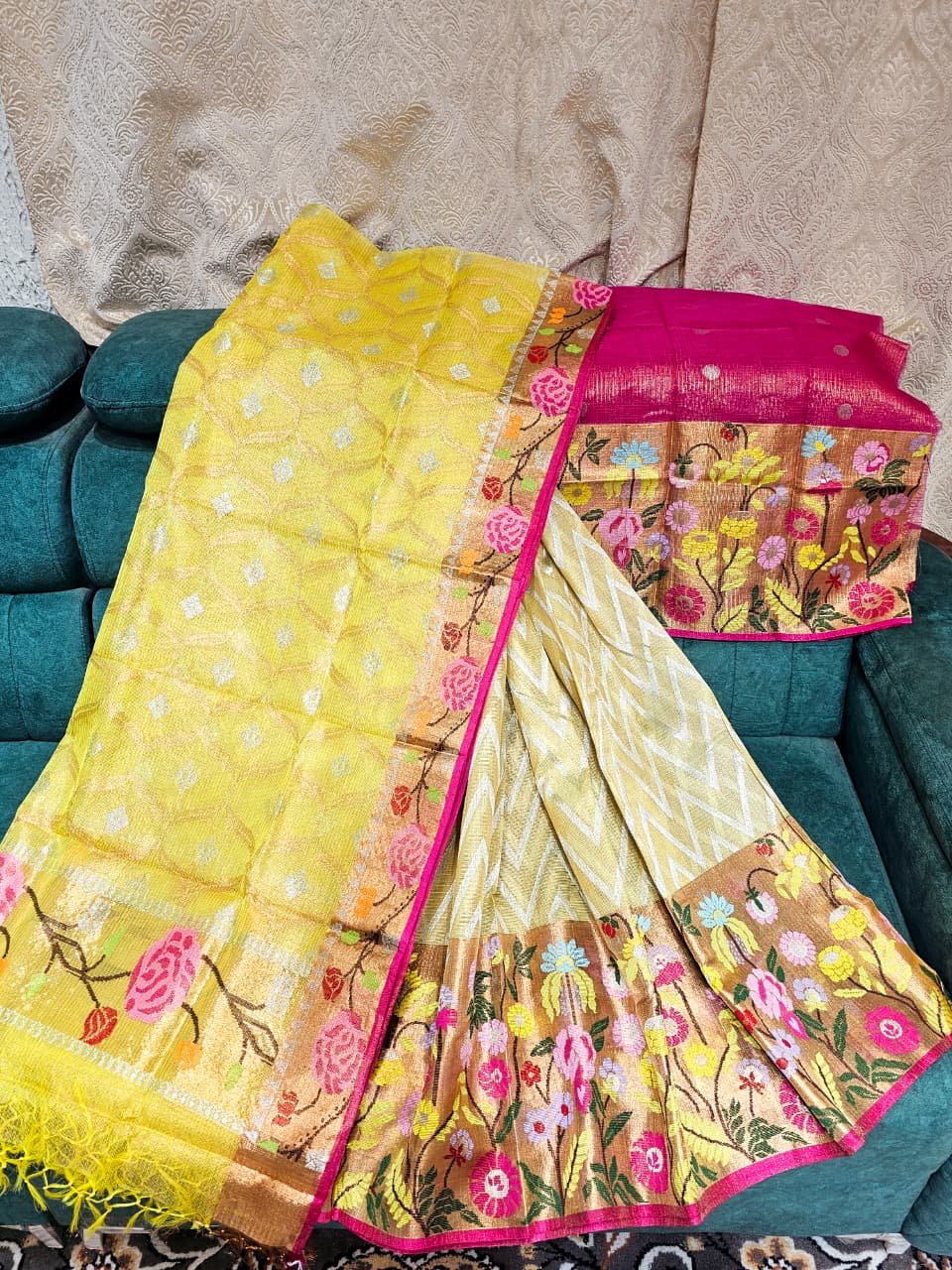 PURE GOLD TISSUE BIG PAITHANI BORDER LEHANGA – SIZE ( FULL SAREE WITH PALLU)